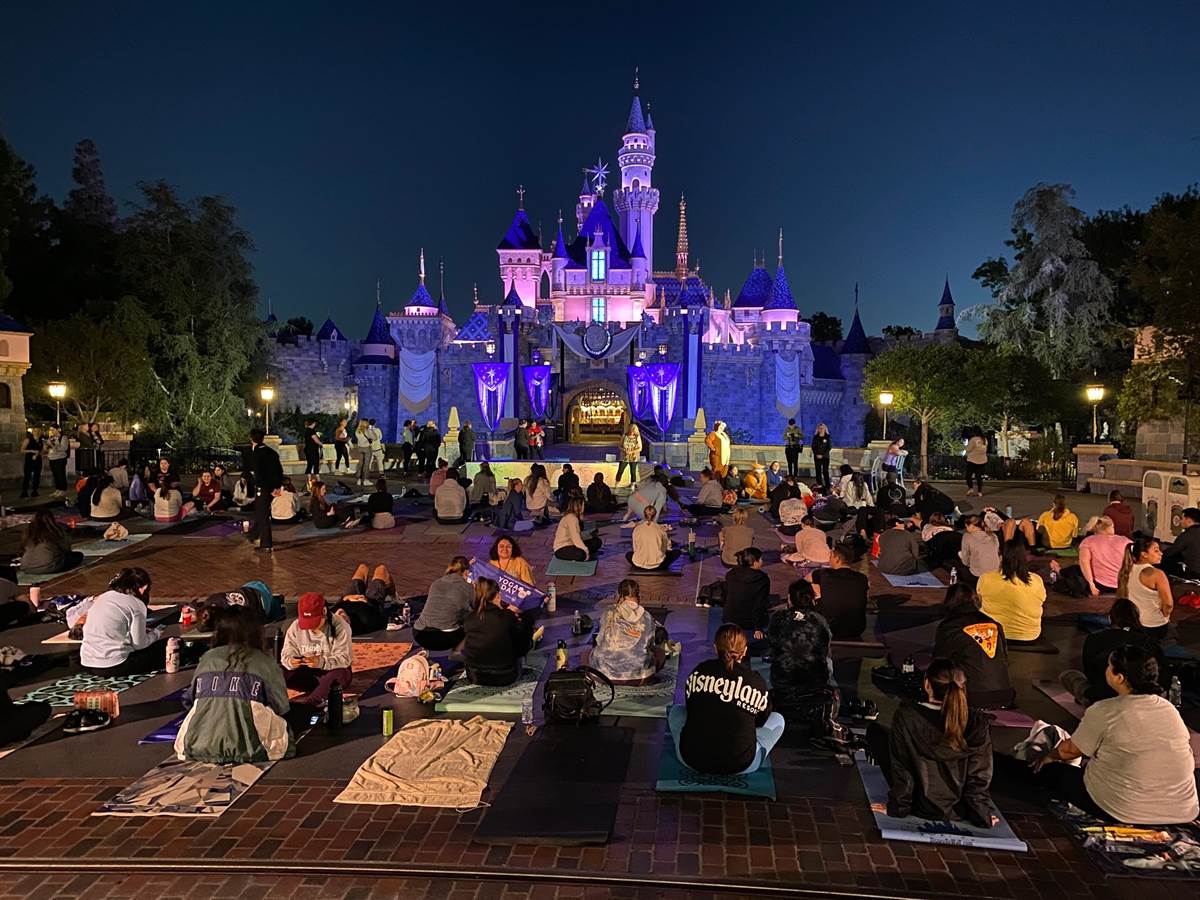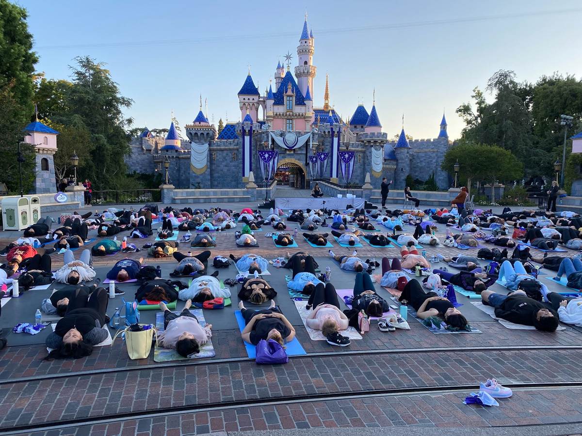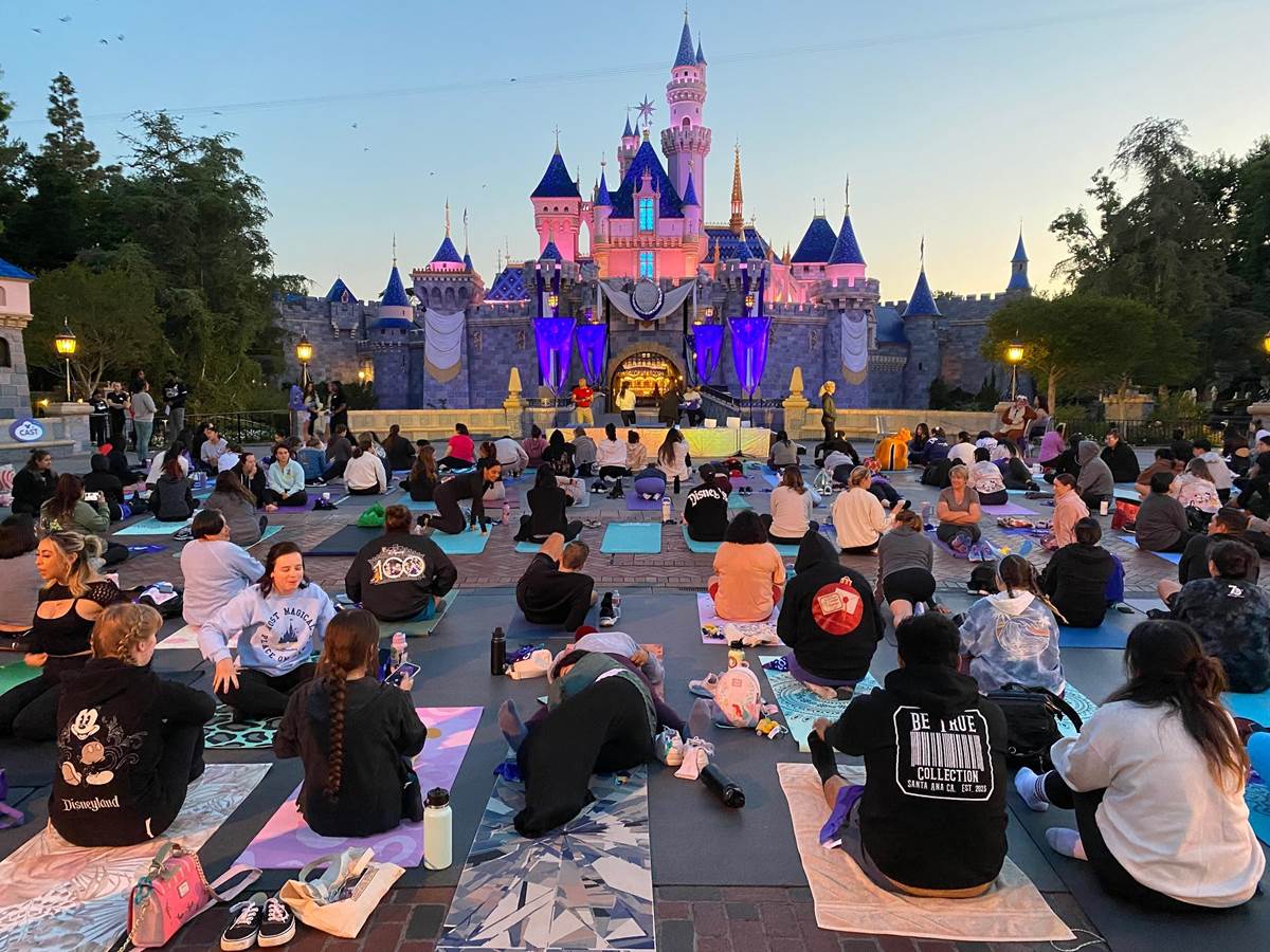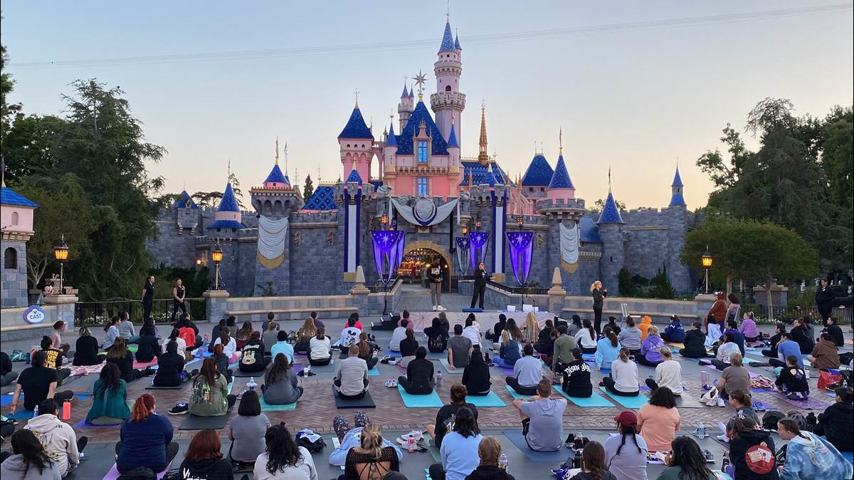 Disneyland Resort Cast Members were able to experience a special opportunity this morning as part of a now-annual wellness event - sunrise yoga in front of Sleeping Beauty Castle as part of International Yoga Day.
