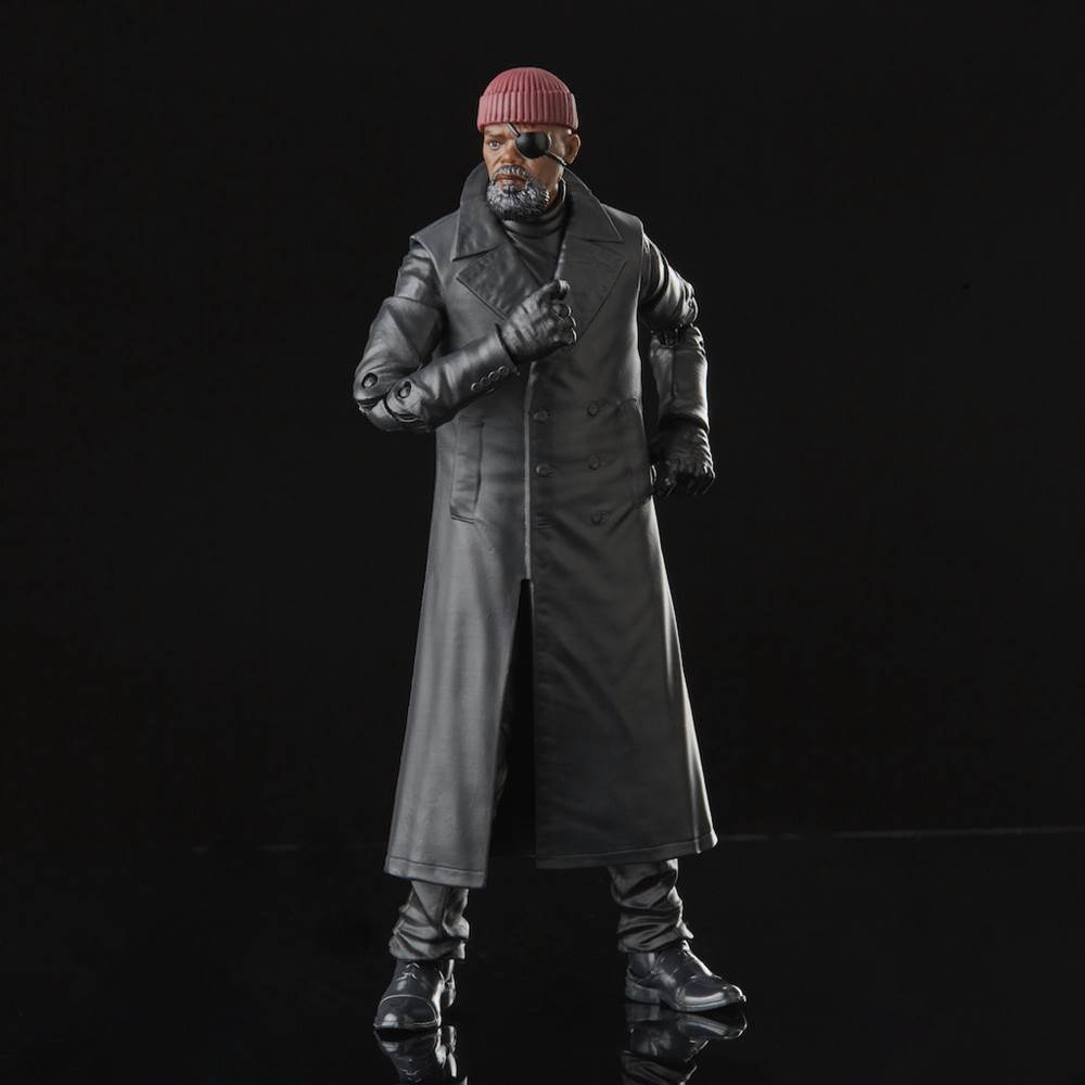- Like many Marvel Legends figures, Talos comes with interchangeable human and Skrull head and hand pieces so that he can be displayed either way. As for Fury, he’s dressed in a long black trench coat, red knit cap, and signature eyepatch. He comes equipped with plenty of accessories including a smoking gun.