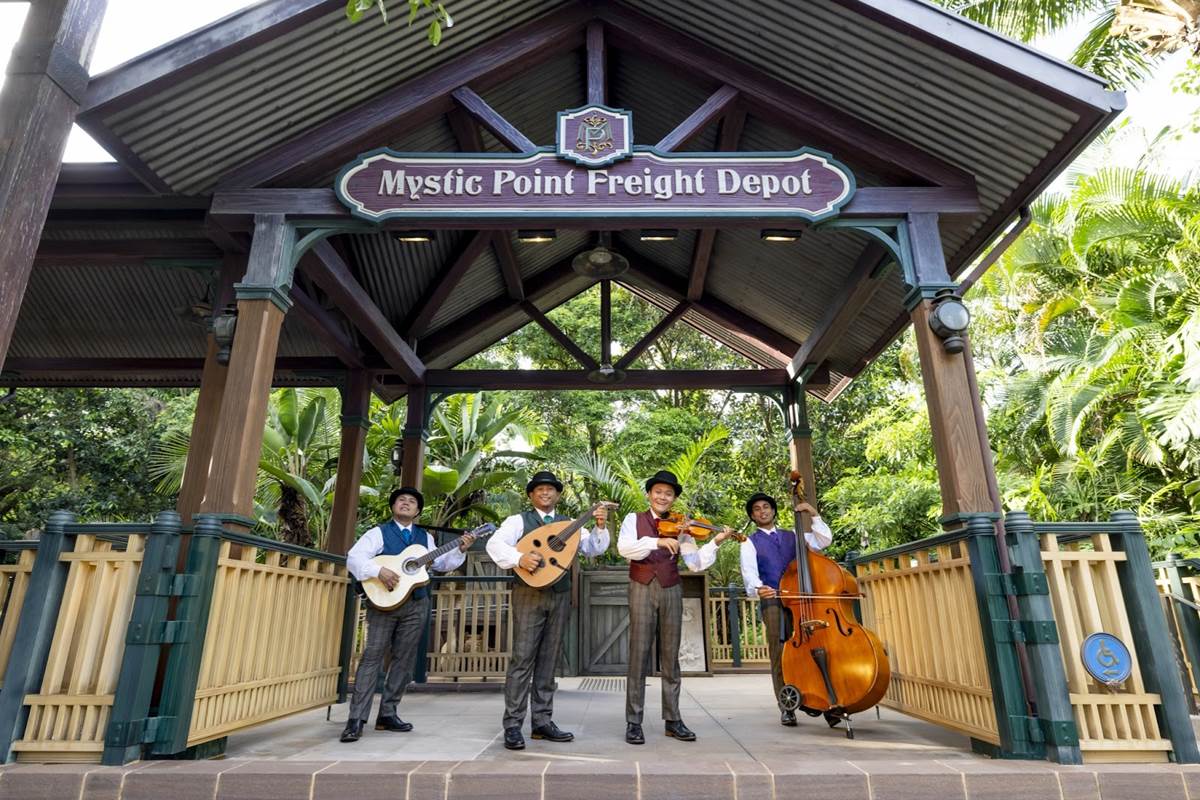 - Witness the mystifying magic of Lord Henry Mystic's great nephew, Reginald Montgomery – who carries a mysterious bag filled with rare and extraordinary objects from all around the world – only at Mystic Point. Be on the lookout for four talented musicians, who will surprise guests with spontaneous performances at the Mystic Point Freight Depot, showcasing vibrant sounds from various corners of the globe.