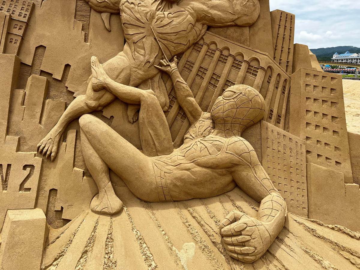- This larger-than-life sand sculpture of Marvel's Spider-Man 2 is now on display at Fulong Beach in New Taipei City, Taiwan.