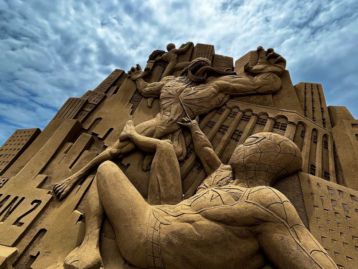 Giant Sand Sculpture Inspired by “Marvel’s Spider-Man 2” Comes to Life in Taiwan