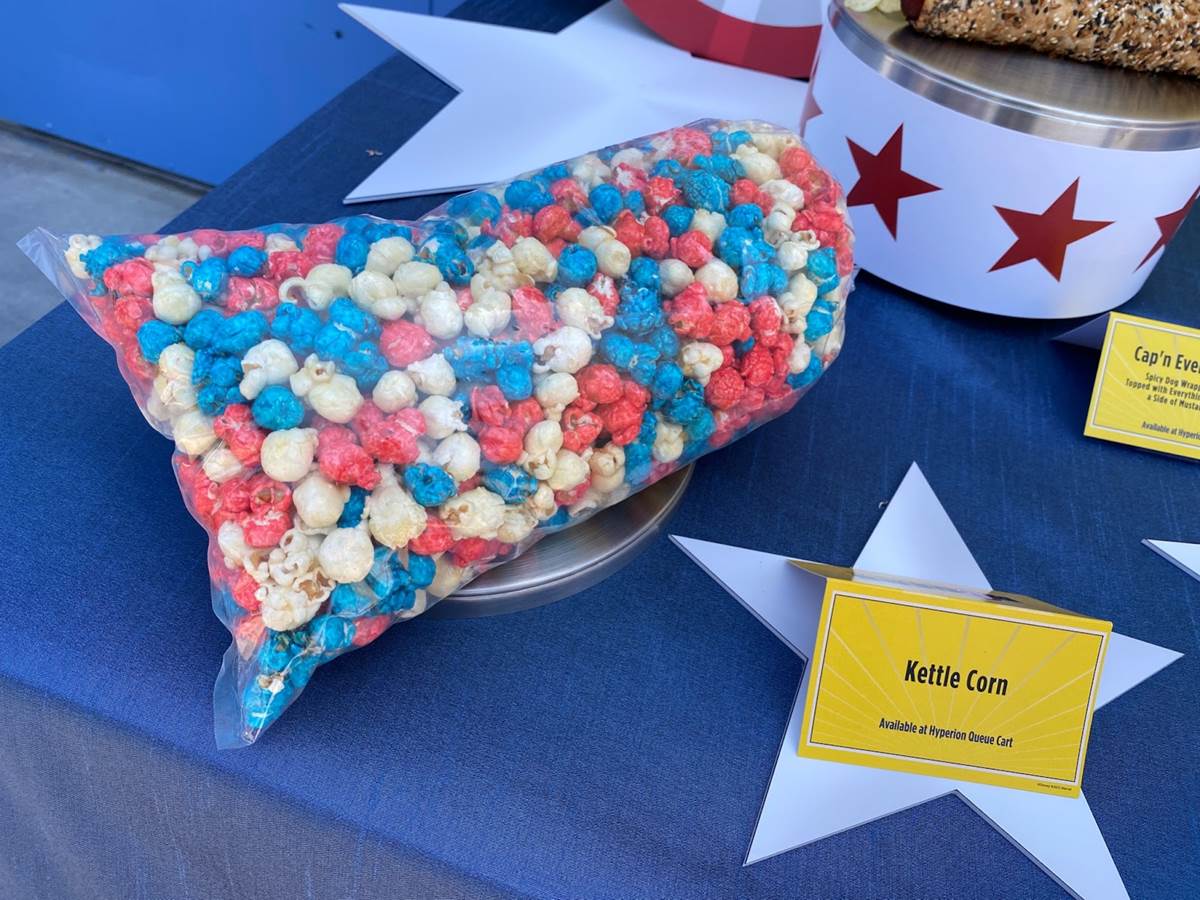 Disney previously previewed many of the specialty food and beverage offerings available at Disney California Adventure, but here’s a look at them today during a special media display. The kettle corn either comes individually, or with a specialty Rogers: The Musical popcorn bucket.