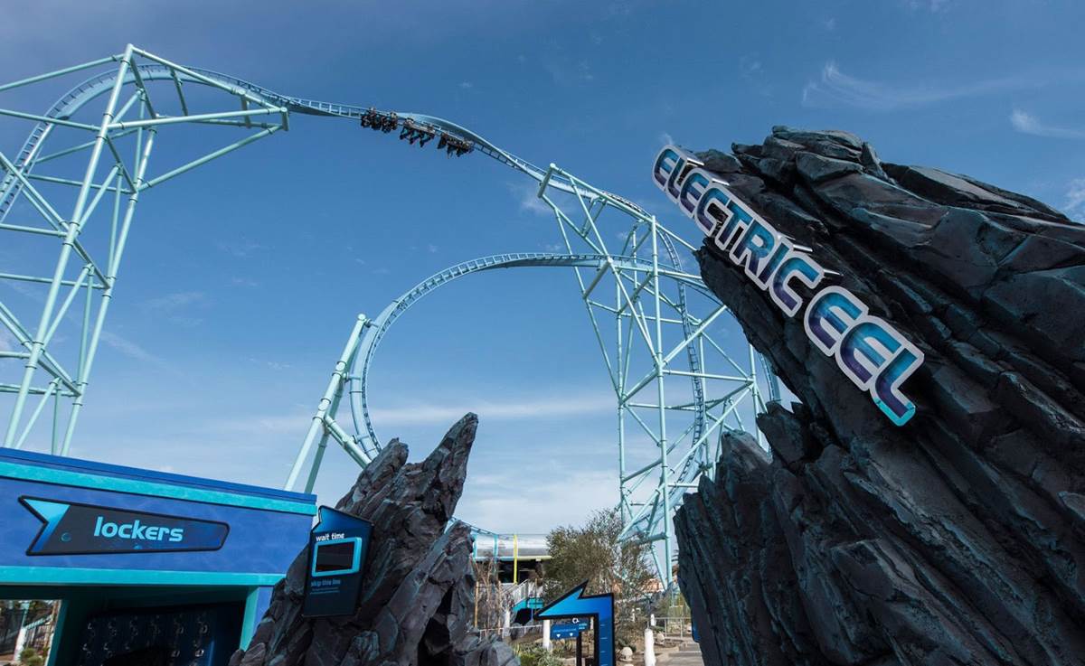 - Electric Eel opened in 2018 and drops riders from heights of 150 feet while getting boosted 60 mph forwards and backwards through looping twists and an inverted heartline roll.