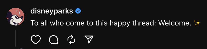 - Disney's first post read: “To all who come to this happy thread: Welcome."