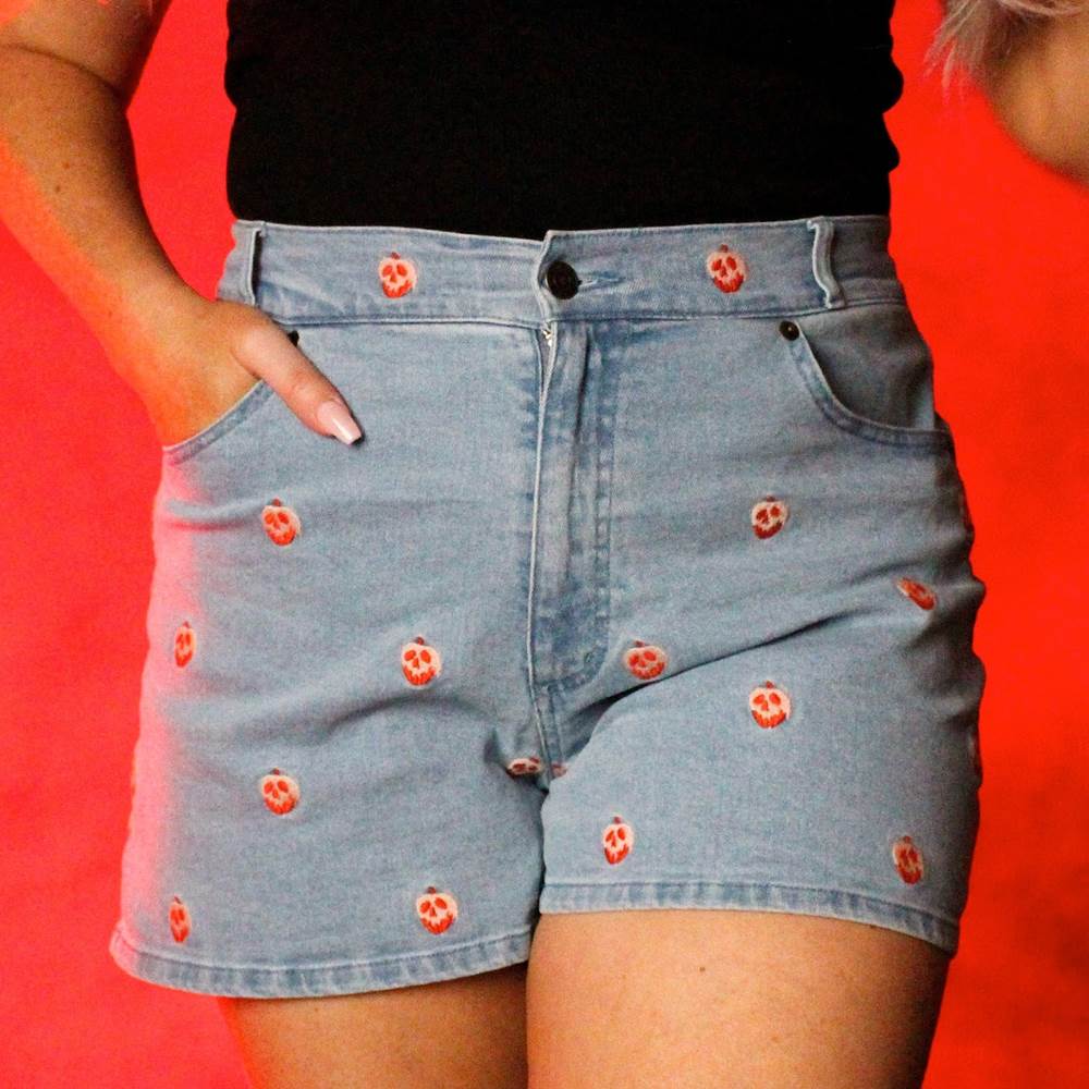 POISON APPLE EMBROIDERED DENIM SHORTS- Cakeworthy