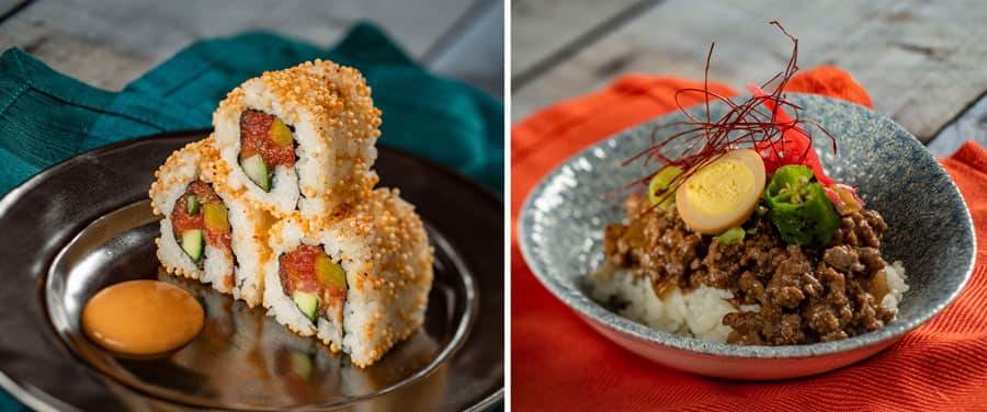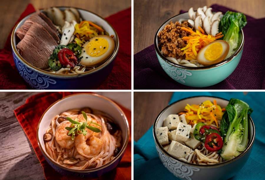 - Shaved Beef Ramen with shiitake mushrooms, pickled carrots and daikon radish, shaved peppers, and a soy egg in citrus-sesame broth