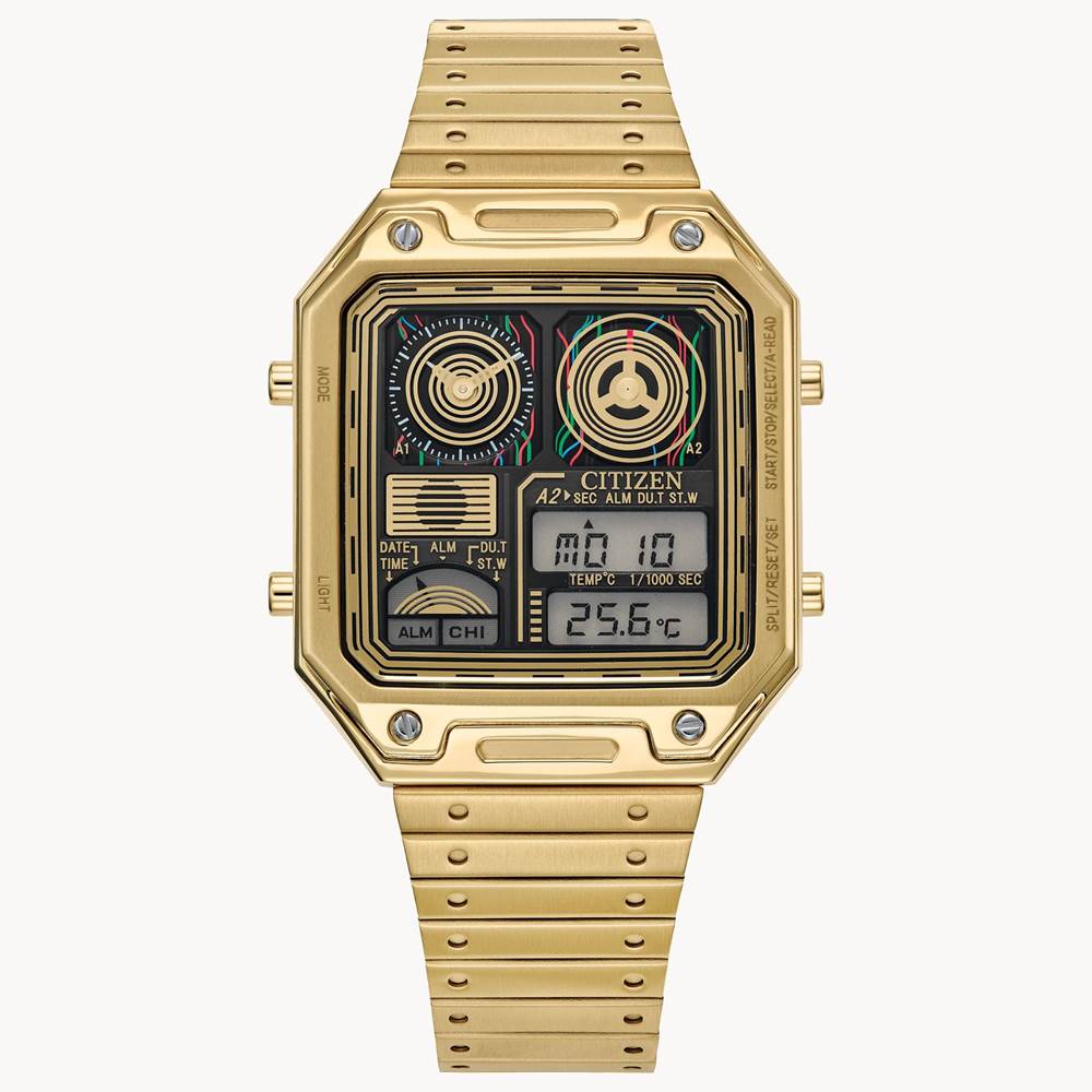 - The new C-3PO™ Ana-Digi is a meticulous droid in the STAR WARS™ galaxy with knowledge of over six million forms of communication. Built by a young Anakin Skywalker™ and programmed for etiquette and persnickety protocol, Threepio’s shining personality comes through in an all gold-tone rectangular stainless-steel timepiece in a design that is inspired by an original Citizen analog-digital watch from the 1980s.