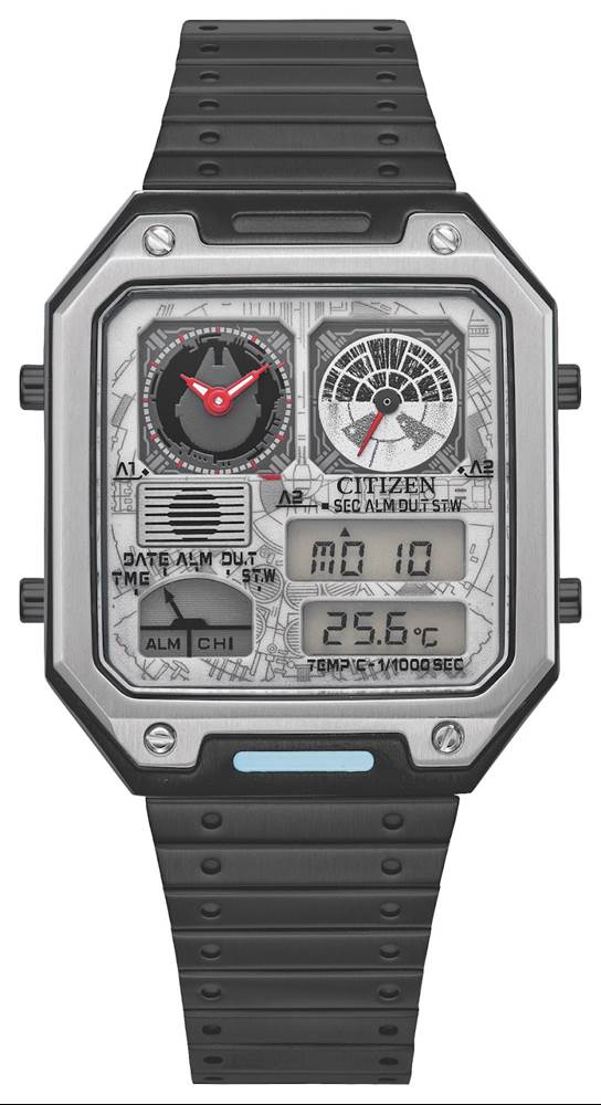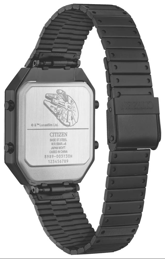 - The new STAR WARS™ Millennium Falcon Ana-Digi timepiece from Citizen honors every detail of the iconic starship. This black IP stainless-steel rectangular case watch is packed with features, including dual time and light speed-inspired sub-dials in sleek gray with subtle red accents.