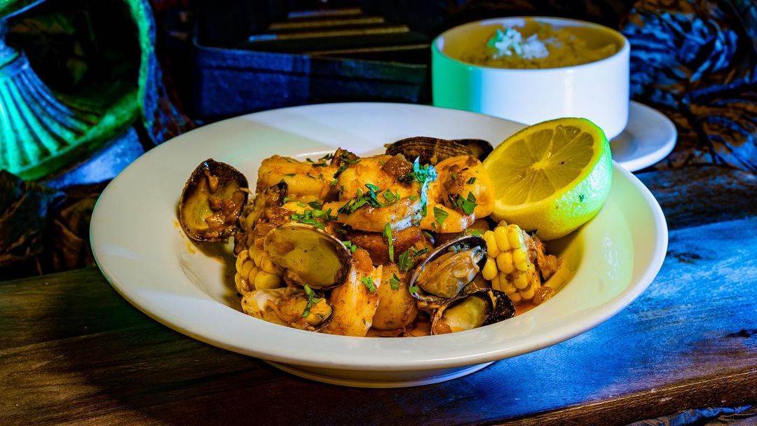 - Haunted Mansion Inspired Pre-Fixe Menu available at Café Orleans featuring the Vanilla Mousse and Seafood Boil