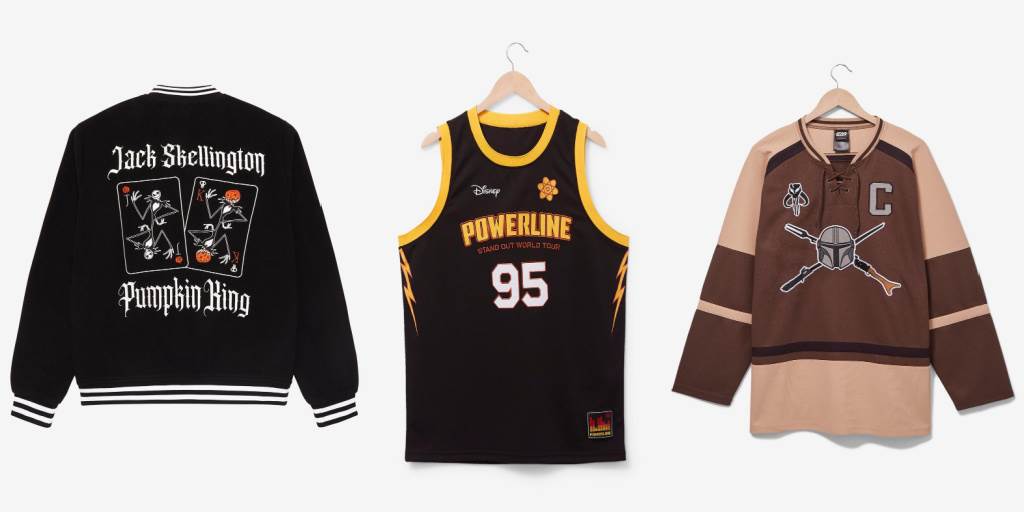 In addition to jackets, BoxLunch has sports jerseys for basketball, baseball and hockey that are inspired by characters and factions instead of traditional sports teams. Superstar Powerline (A Goofy Movie) brings his brand of flair to a black and yellow sleeveless jersey, while Hades (Hercules) celebrates his underworld status in all black.