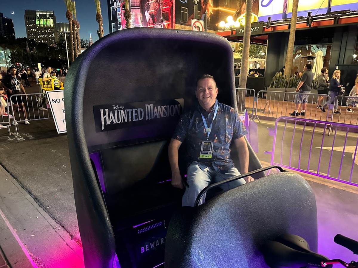 In a genius bit of marketing, Disney is offering San Diego Comic-Con attendees free rides on a Doom Buggy around San Diego’s Gaslamp Quarter in promotion of the Haunted Mansion movie.