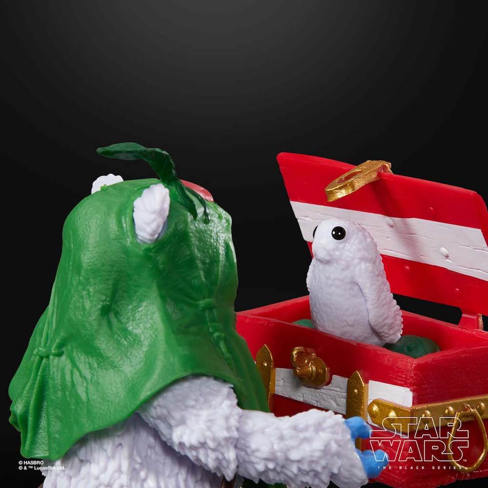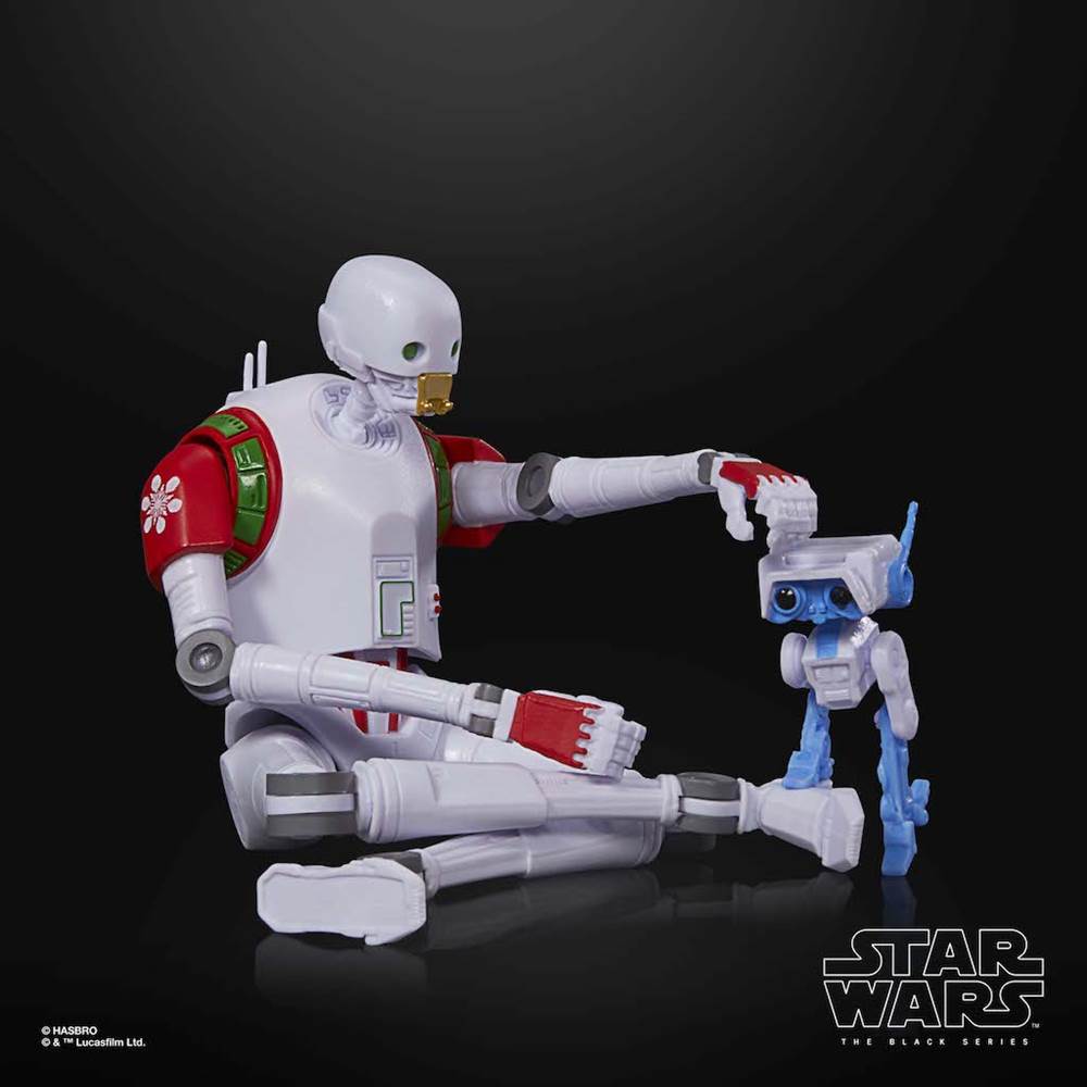 • Since the holiday season is just around the corner, Hasbro will be putting a festive spin on some favorite characters like Ewoks, KX Security Droid and even Salacious B. Crumb! Each figure gets a jolly color scheme that reminds us of Christmas and other winter holidays.