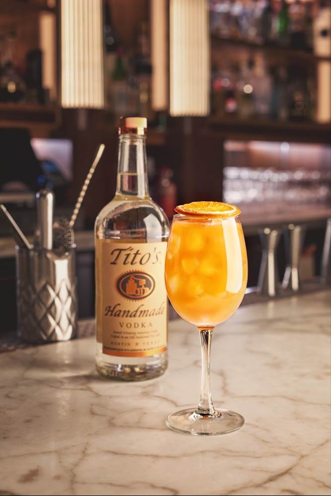 - Tito’s Handmade Vodka, Campari, orange juice, lemon juice and agave