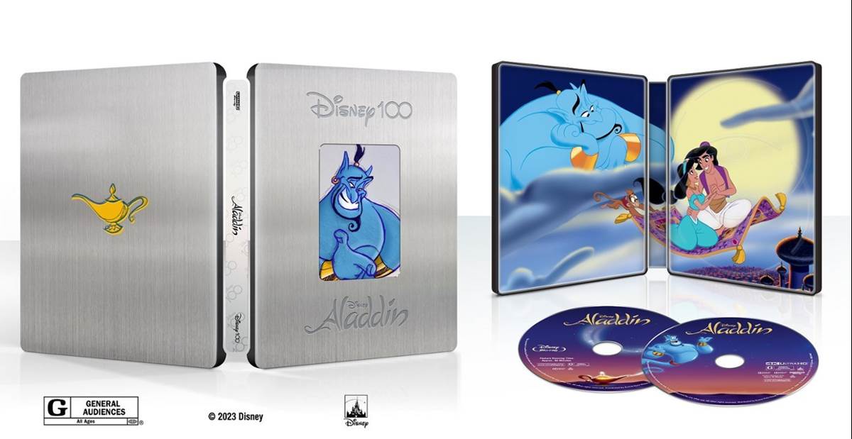 - Disney's 100th anniversary celebration continues with the exciting release of the Disney animated classic, Aladdin to a special collectible SteelBook edition, for the first time ever.