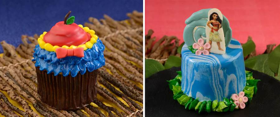 - Moana Heart of Te Fiti Cupcake: Coconut cake, pineapple custard filling, coconut buttercream, white chocolate ‘Heart of Te Fiti,’ and coconut crumble (New)
