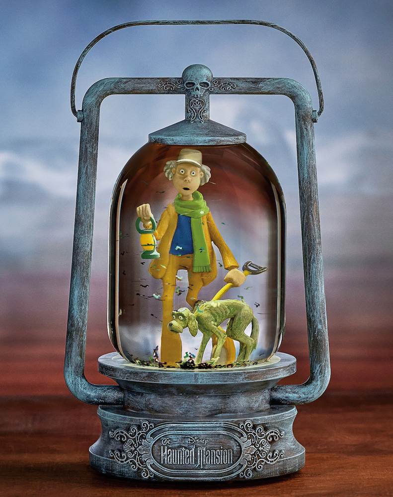 Highlight an iconic Haunted Mansion moment with this lantern globe that includes the trembling caretaker and his cowardly dog.