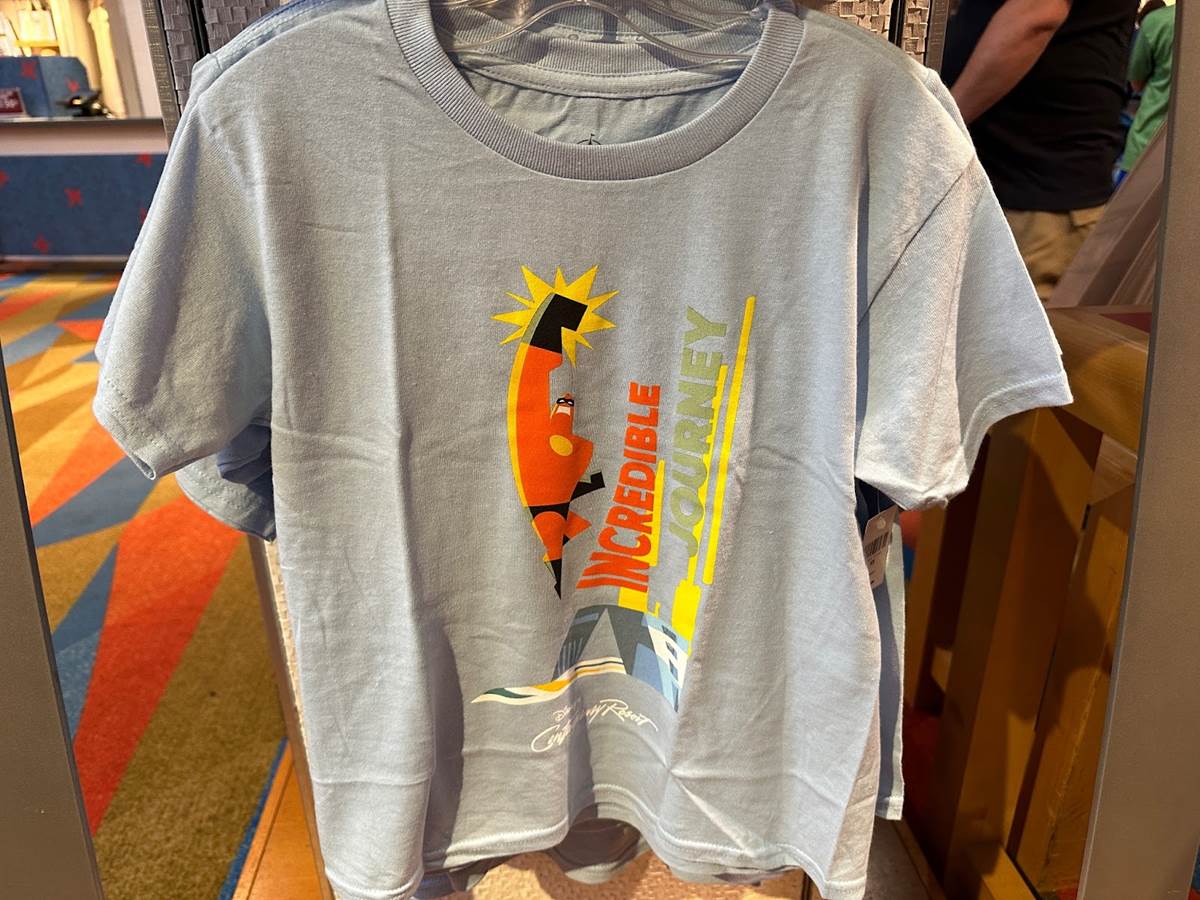 This new T-Shirt and pin both feature the main Contemporary building, the Monorail and Mr. Incredible. The youth tee retails for $21.99.