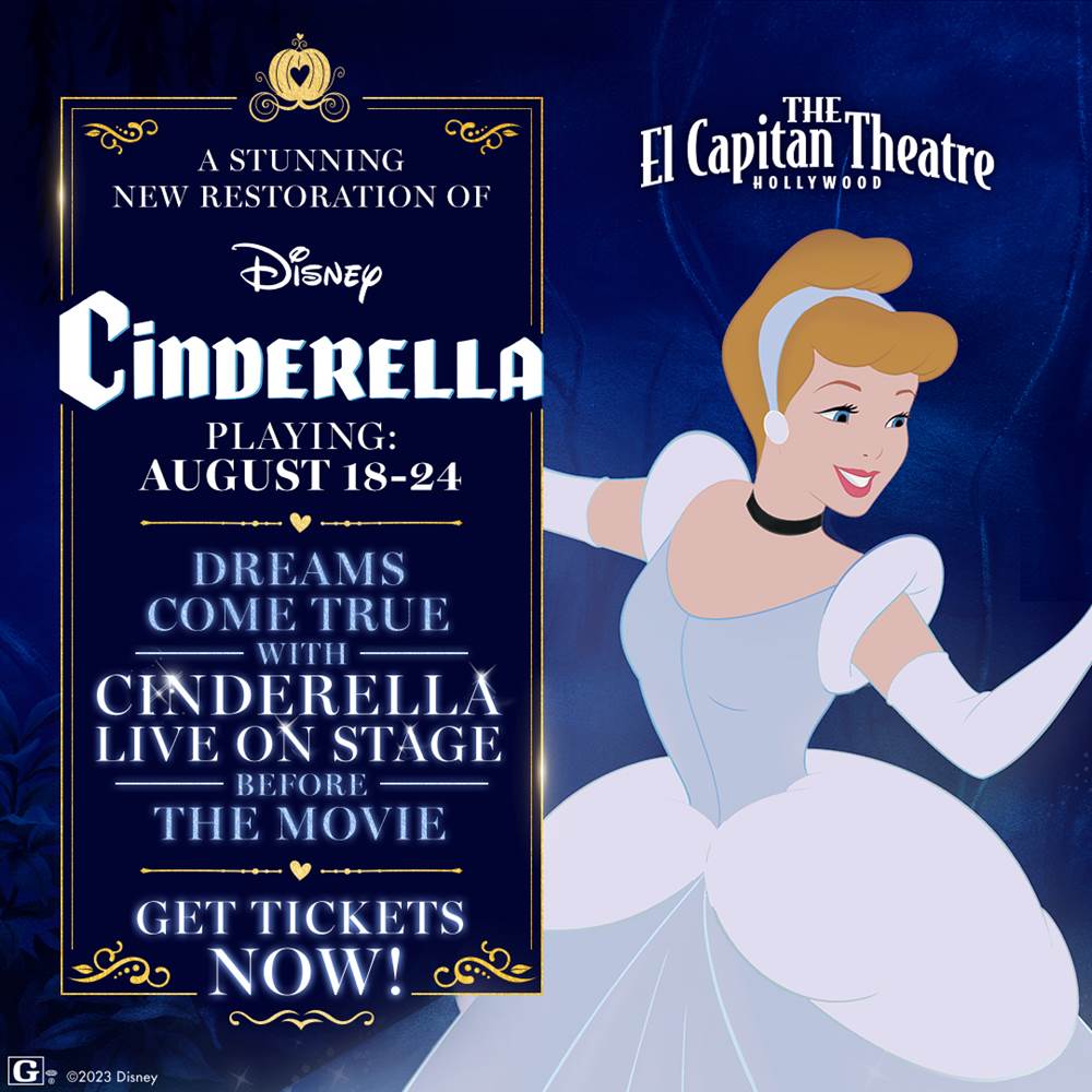 - The El Capitan Theatre in Hollywood, California will be showing the stunning 4K restoration of Cinderella from Friday, August 18th to Thursday, August 24th.
