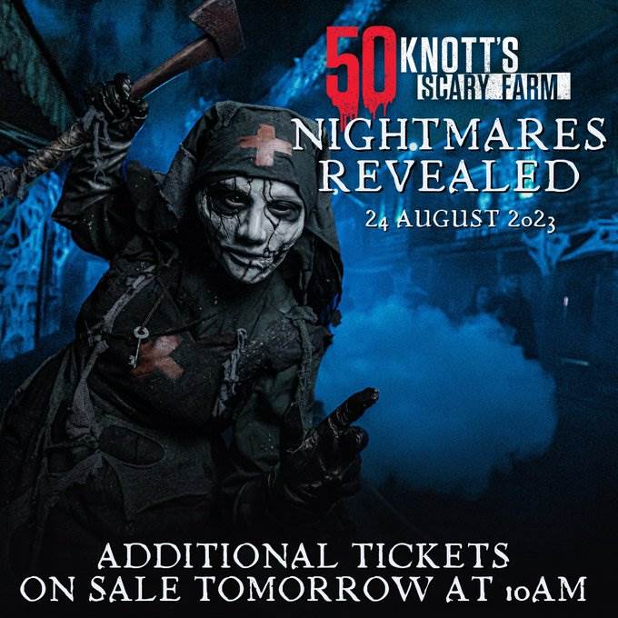 • They Tweeted/X-ed: “Due to popular demand, we're releasing more tickets for our Knott's Scary Farm 50: Nightmares Revealed event! Join us on August 24, at 7pm as we unearth all the ghouls in store for this year. Hosted by Vamp and Jeff Tucker, this spine-tingling night is one for the books."