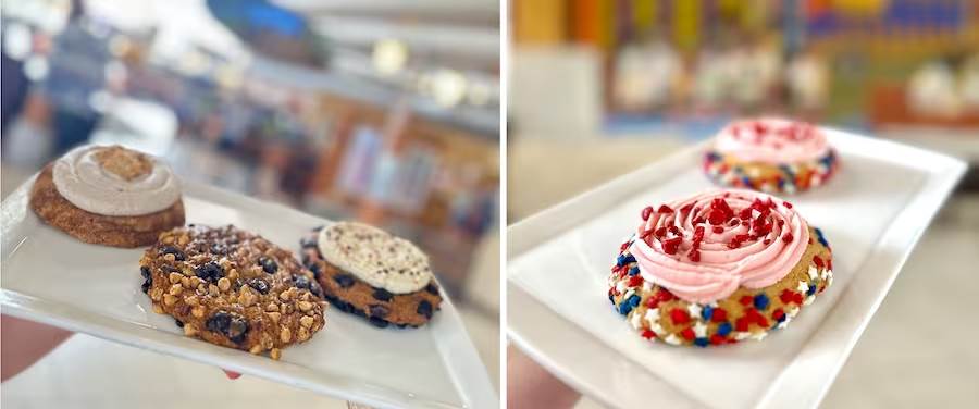 - New Signature Deluxe Cookies include a Chocolate Chunk Cookie with peanut butter buttercream, a Churro Cookie with cinnamon buttercream, and Kitchen Sink Cookie, a chocolate chip cookie with salted caramel, Mickey chocolate chips, peanut butter chips, butterscotch, and walnuts. While these three will all be available year-round, there will also be a seasonal sugar cookie that will rotate throughout the year too.