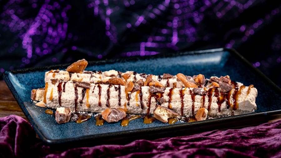 - Oogie Boogie Churro: Chocolate cookie-covered churro with green icing, gummy worms, and candies (New)
