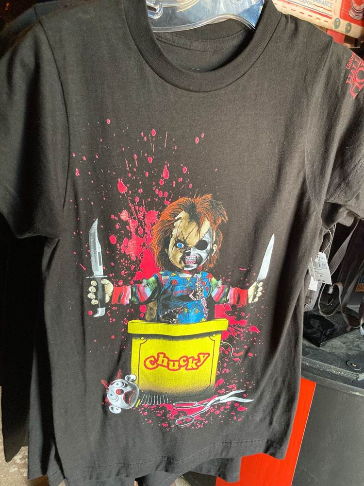 - Merchandise for some of the other haunted houses can also be found, with a shirt and glass themed to Universal Monsters Unmasked and a new Chucky shirt also available in the shop.