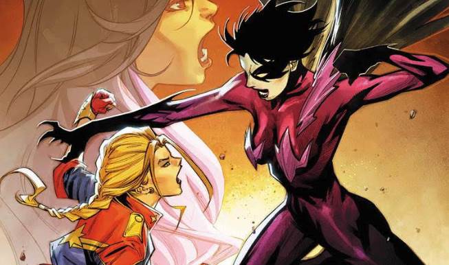 - Writer Alyssa Wong: “The Omen is a villain with corruptive magic, a mysterious connection to the Negative Zone, and the ability to devour energy. She's been looking forward to meeting Carol for a hot minute. Yuna Yang is a full-time college student and recreational cat burglar, morally flexible with a heart of... gold? Her hunt for the Nega-Bands leads her straight to Carol--and into trouble. I love a good reluctant team-up story. Pairing the leader of the Avengers with a casual, cheerful criminal leads to a fun dynamic and all kinds of shenanigans. As for the Omen... well, turns out Carol and Yuna's lives might intersect more than they think."