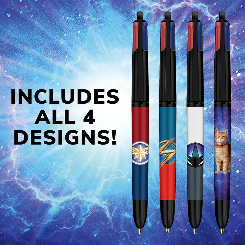 - Pens feature Ms. Marvel, Captain Marvel, Photon, and Goose the Flerken.
