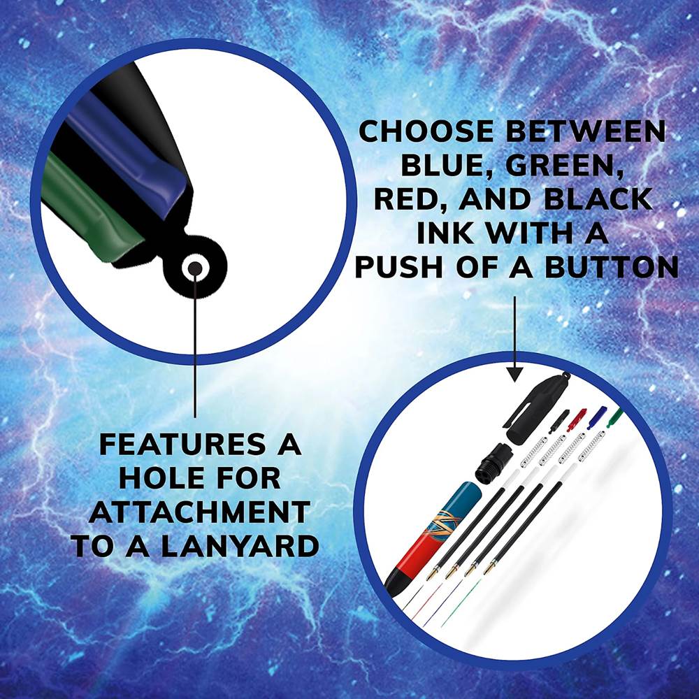 - These Marvel Studios-themed BIC pens feature four colors in one convenient pen: black, blue, red, and green.