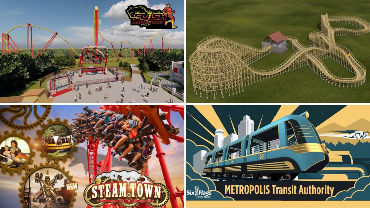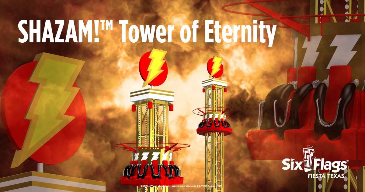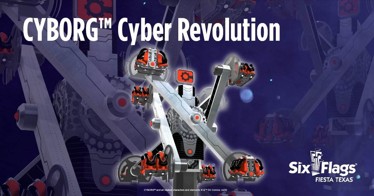 - Six Flags Fiesta Texas – An expansion of the DC Universe land will include CYBORG Cyber Revolution, creating a visually stunning and air-time-filled ride experience of four individual arms rotating in fast, intermeshing orbits; SHAZAM! Tower of Eternity rotating family drop tower; METROPOLIS Transit Authority allowing 16 passengers to relax and enjoy an aerial view 17 feet above DC Universe aboard two Art Deco covered monorail-style trains.