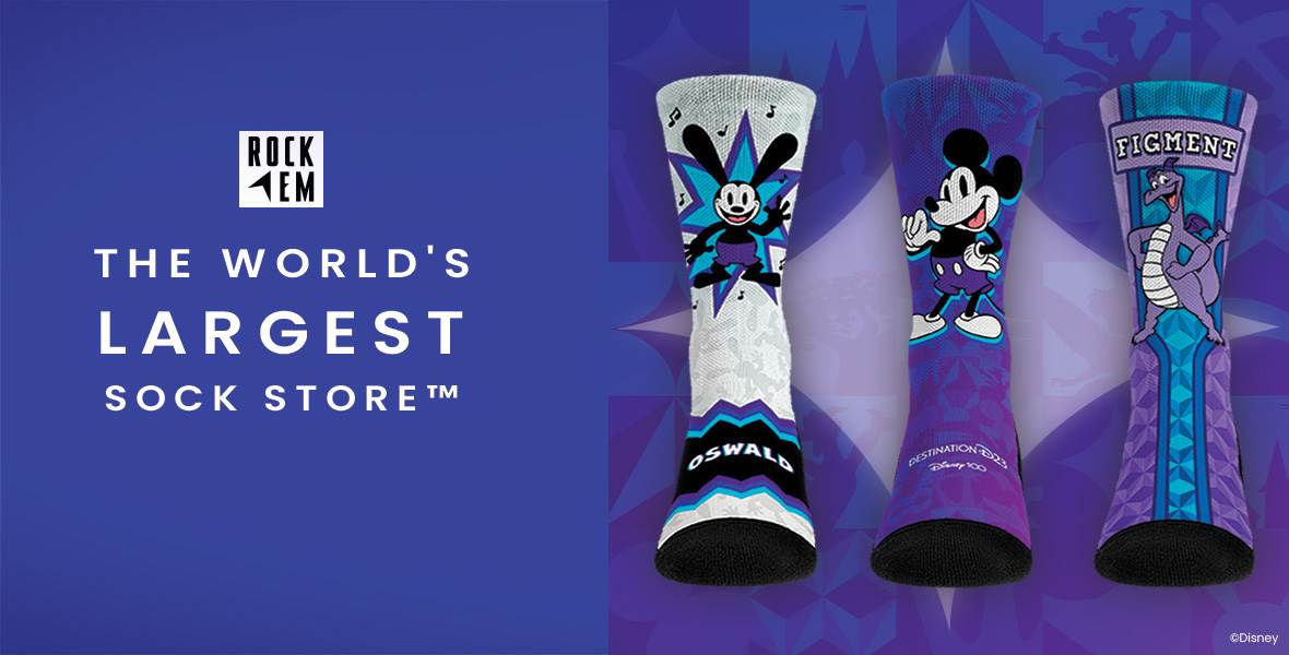 - Shop at the World’s Largest Sock Store by Rock ’Em—with a variety of designs featuring characters from Marvel, Star Wars, Pixar, Disney Princess, Mickey and Friends, and much more. Stop by the booth to get your hands on the Destination D23 show exclusive Figment socks.