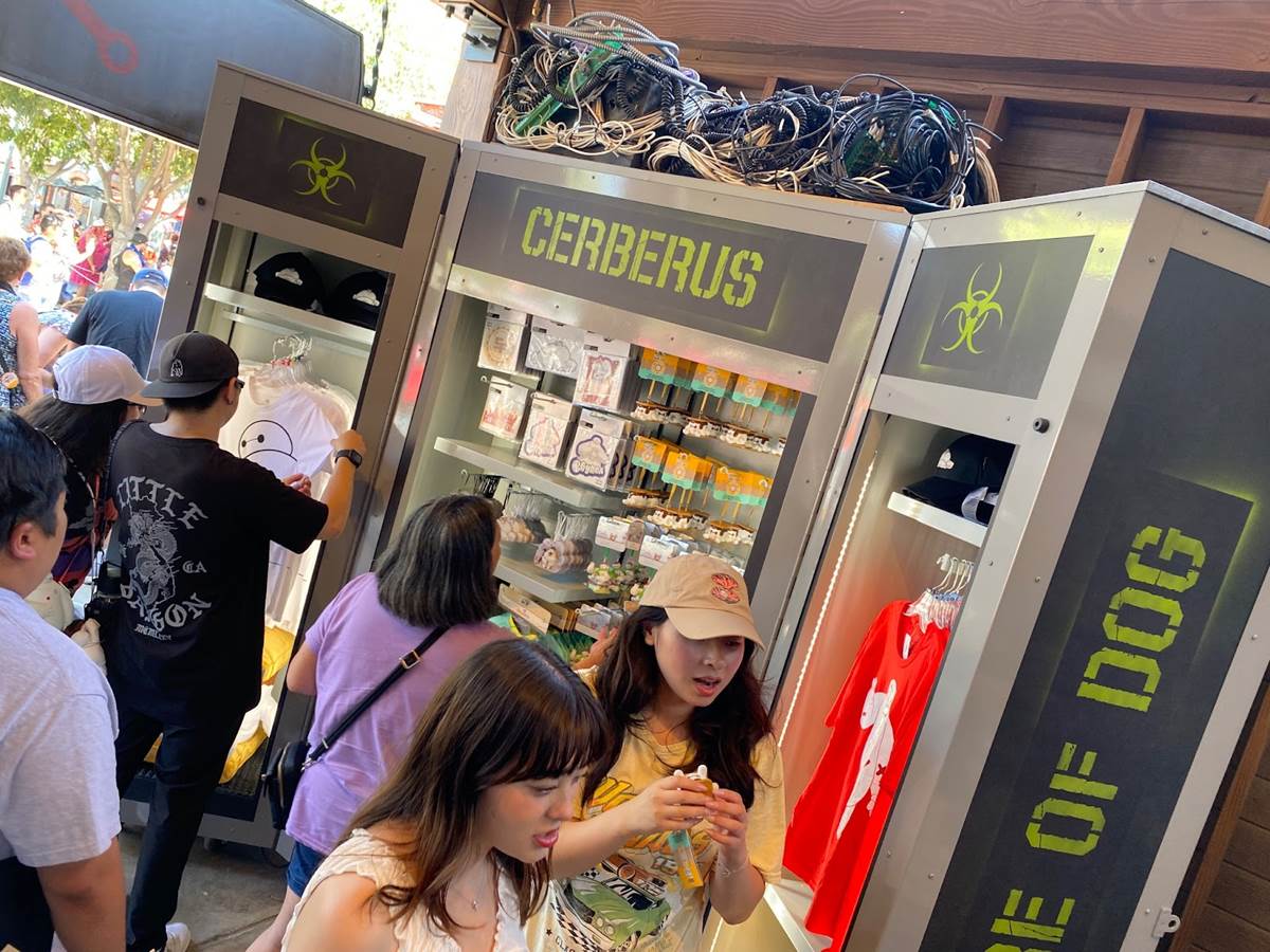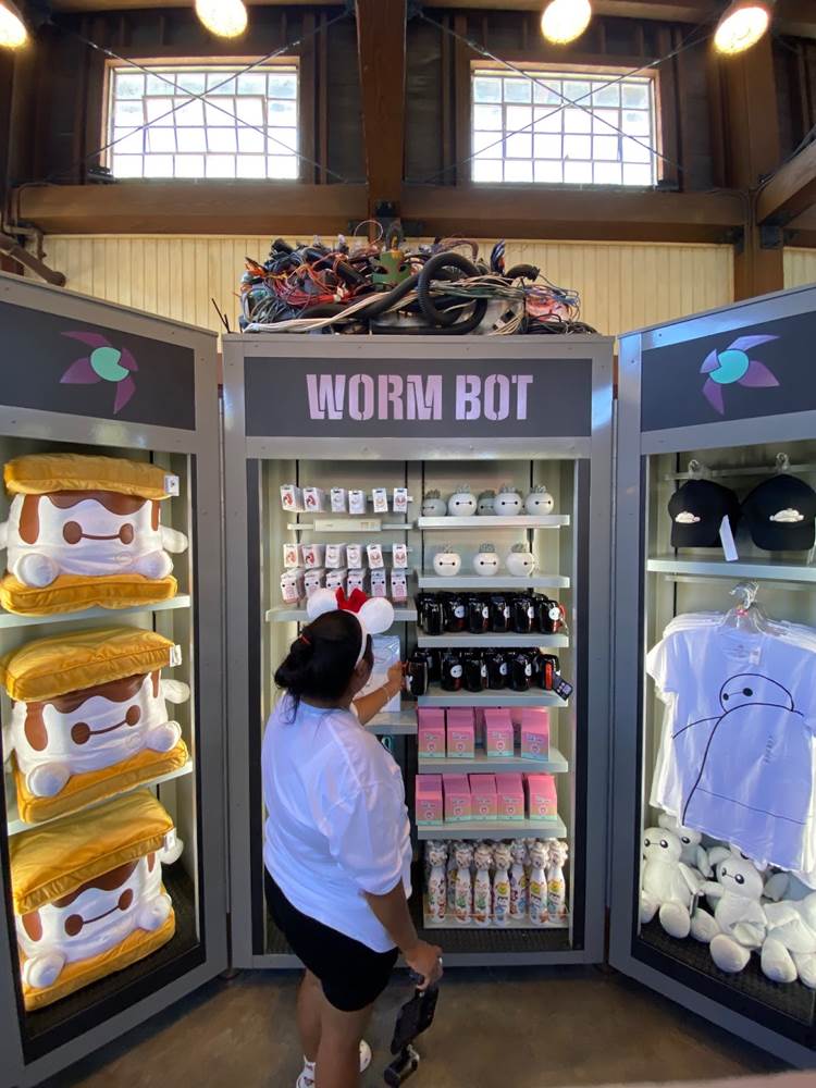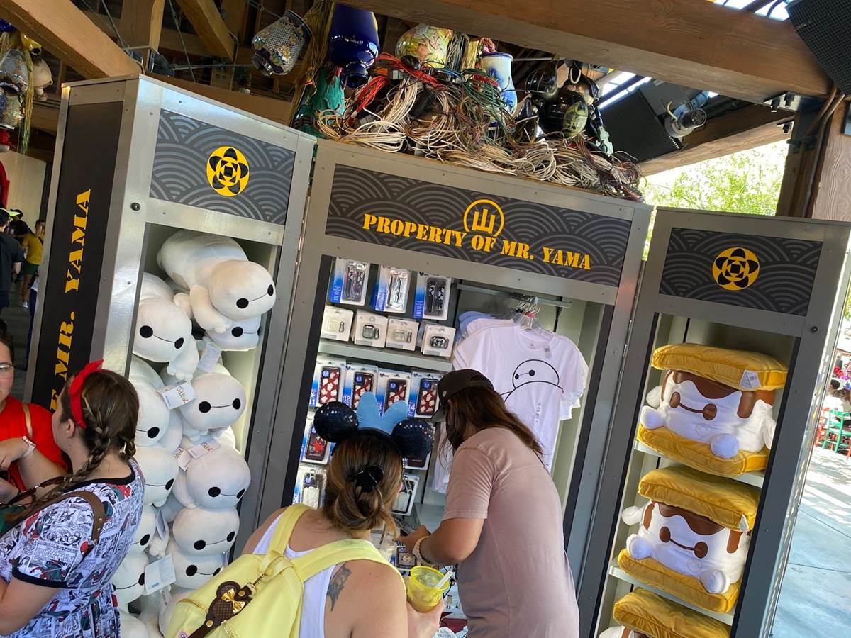 San Fransokyo Maker’s Market is a storefront stocked with unique apparel, homewares and more featuring Baymax and friends. Artwork of various designs that led up to the Megabot are displayed above the entrance signs, one in English and one in Japanese.