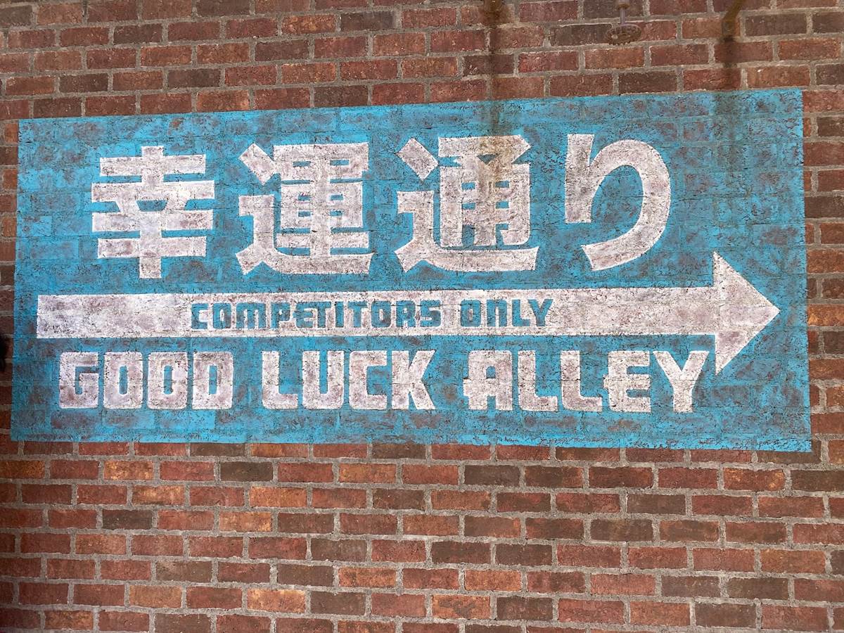 Off to the left of the store is a pathway leading backstage, decorated with advertising for the Maker’s Market and Competitor’s Alley.