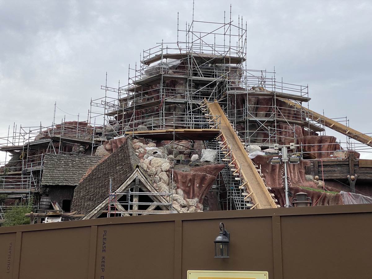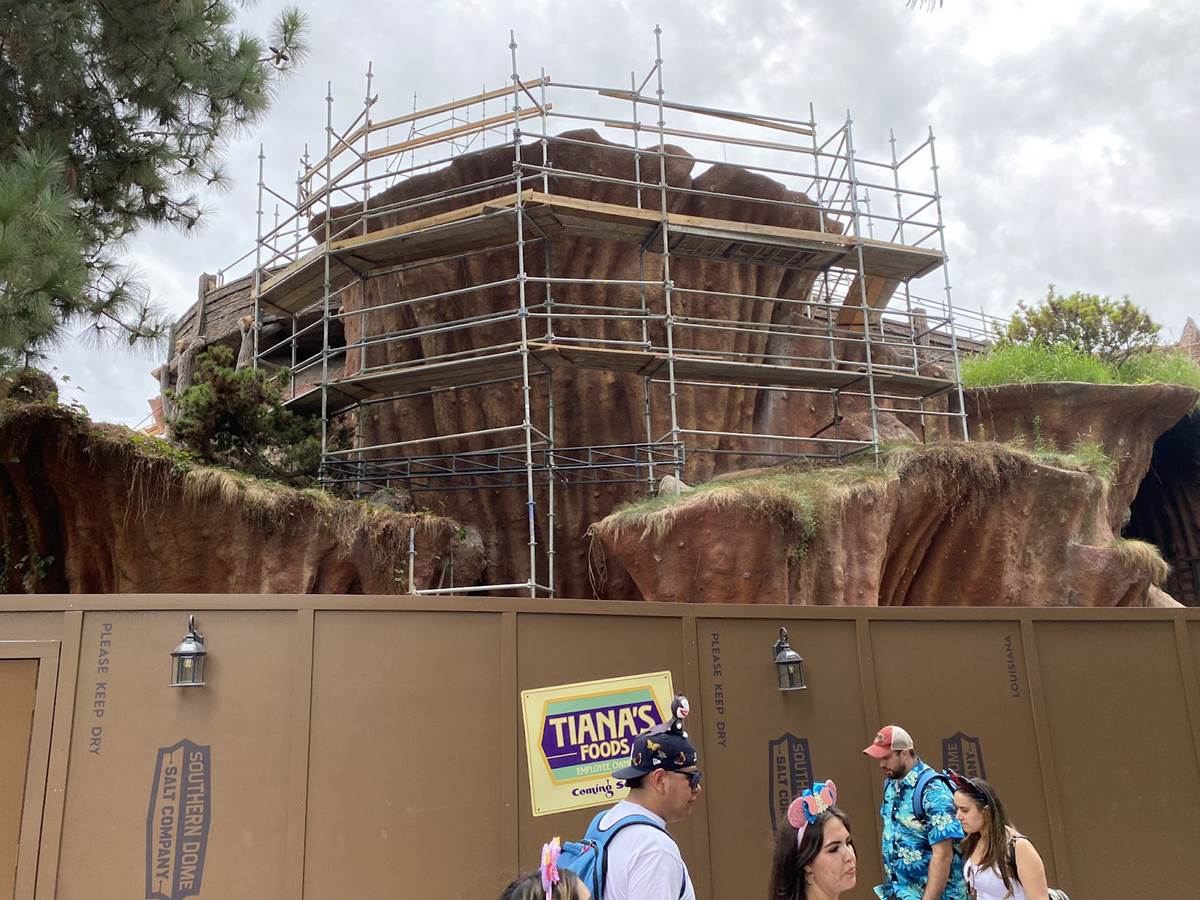 - Let’s also take a brief look at construction on Tiana’s Bayou Adventure, which has seen the top of the former Splash Mountain removed.