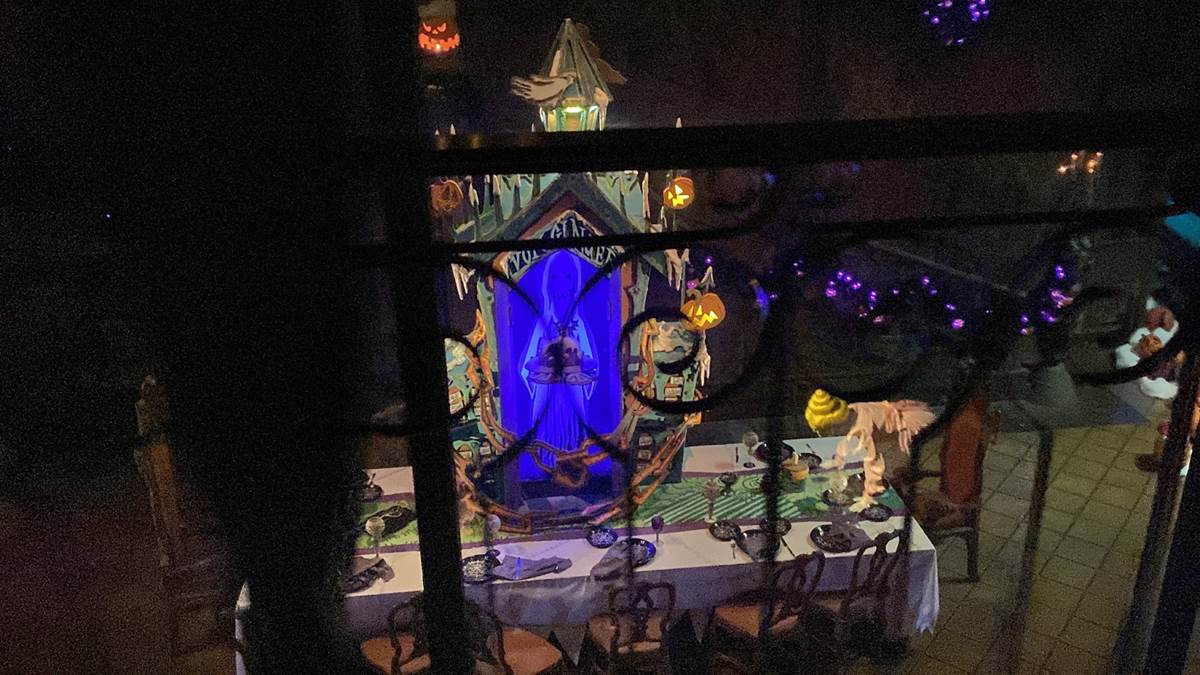 On the inside, there are no noticeable differences this year, aside from of course the always popular gingerbread house. This year, it’s Von Ginger’s time to shine, as he pops out of the mausoleum to share a fruitcake with you!