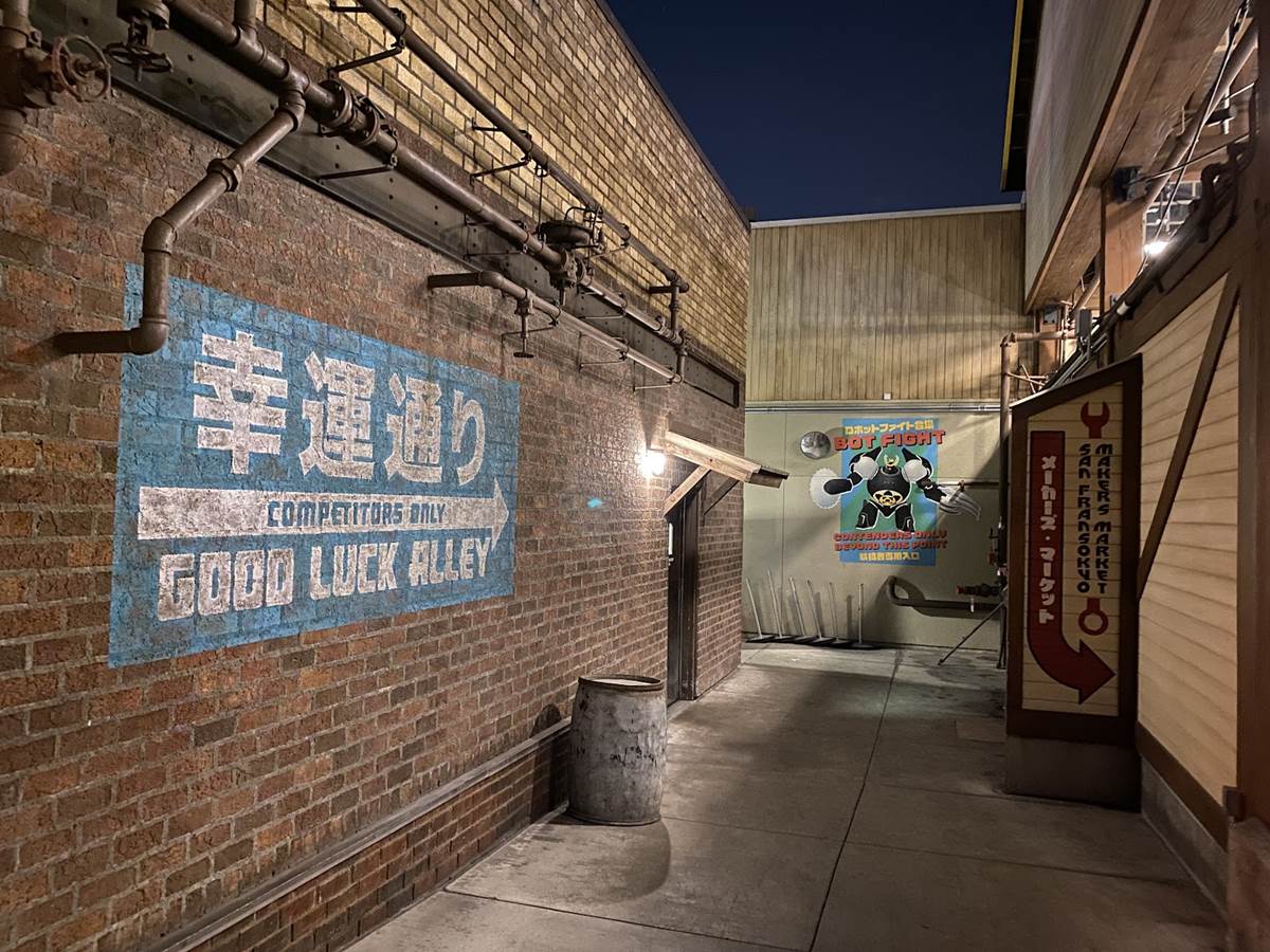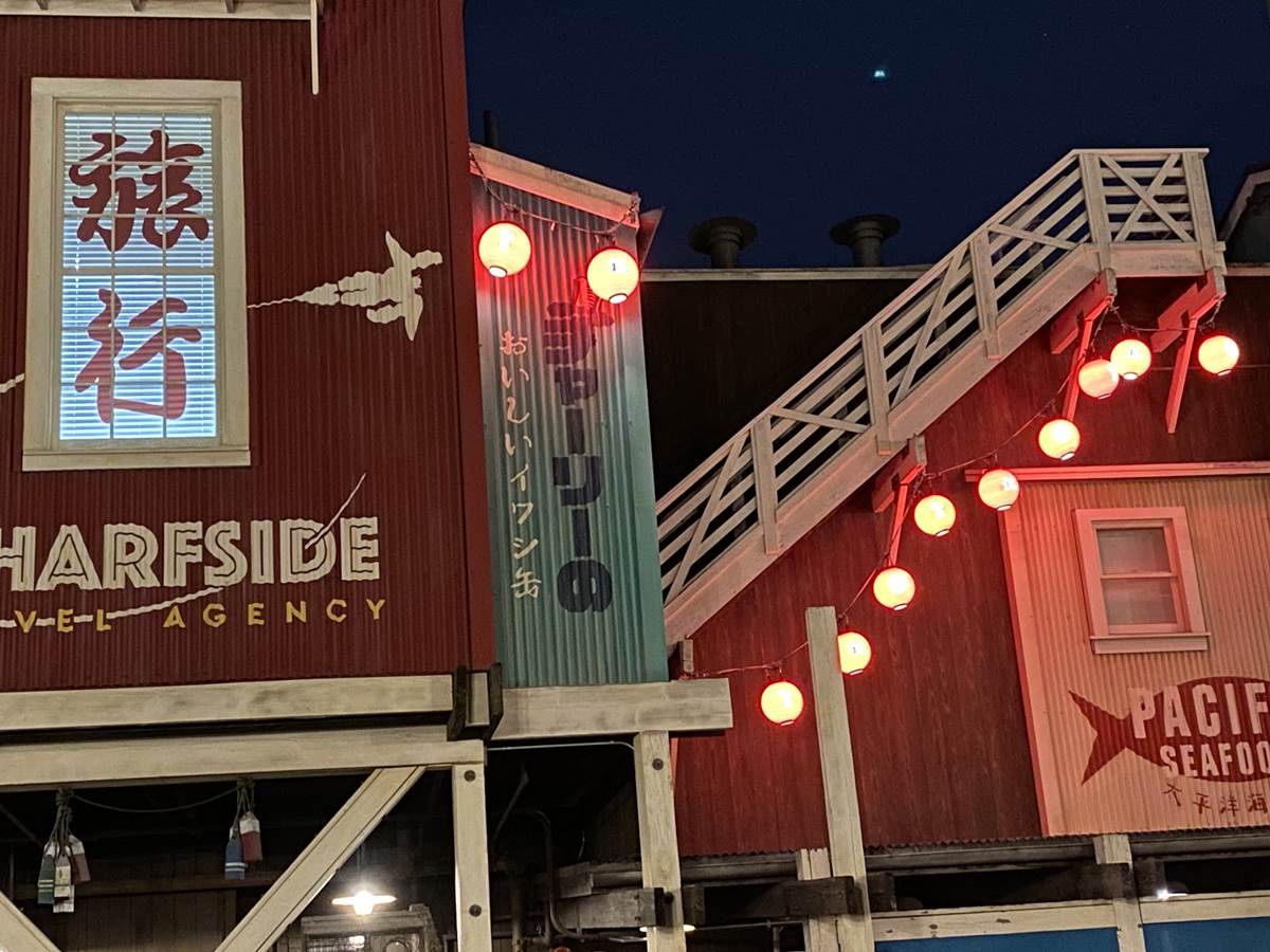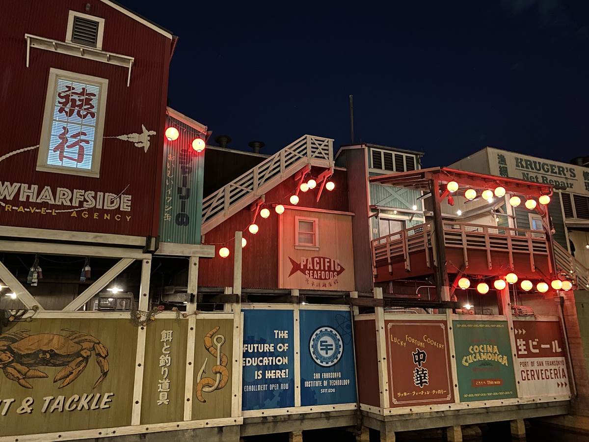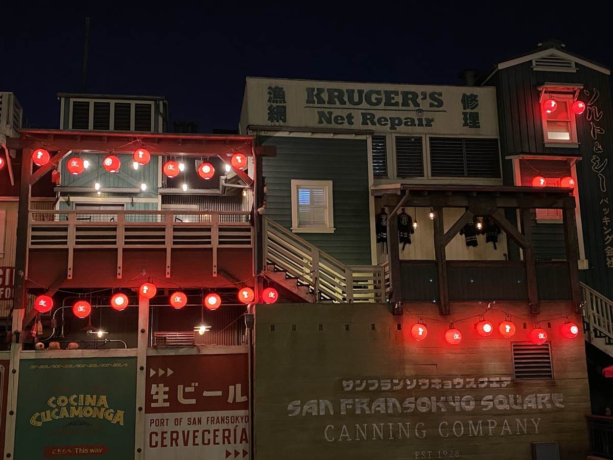On the water’s edge, fans can see new illuminated lanterns that light up the side of the buildings that make up the main strip of San Fransokyo Square, adding shades of red to the new street art and iconography added to this side of the building.