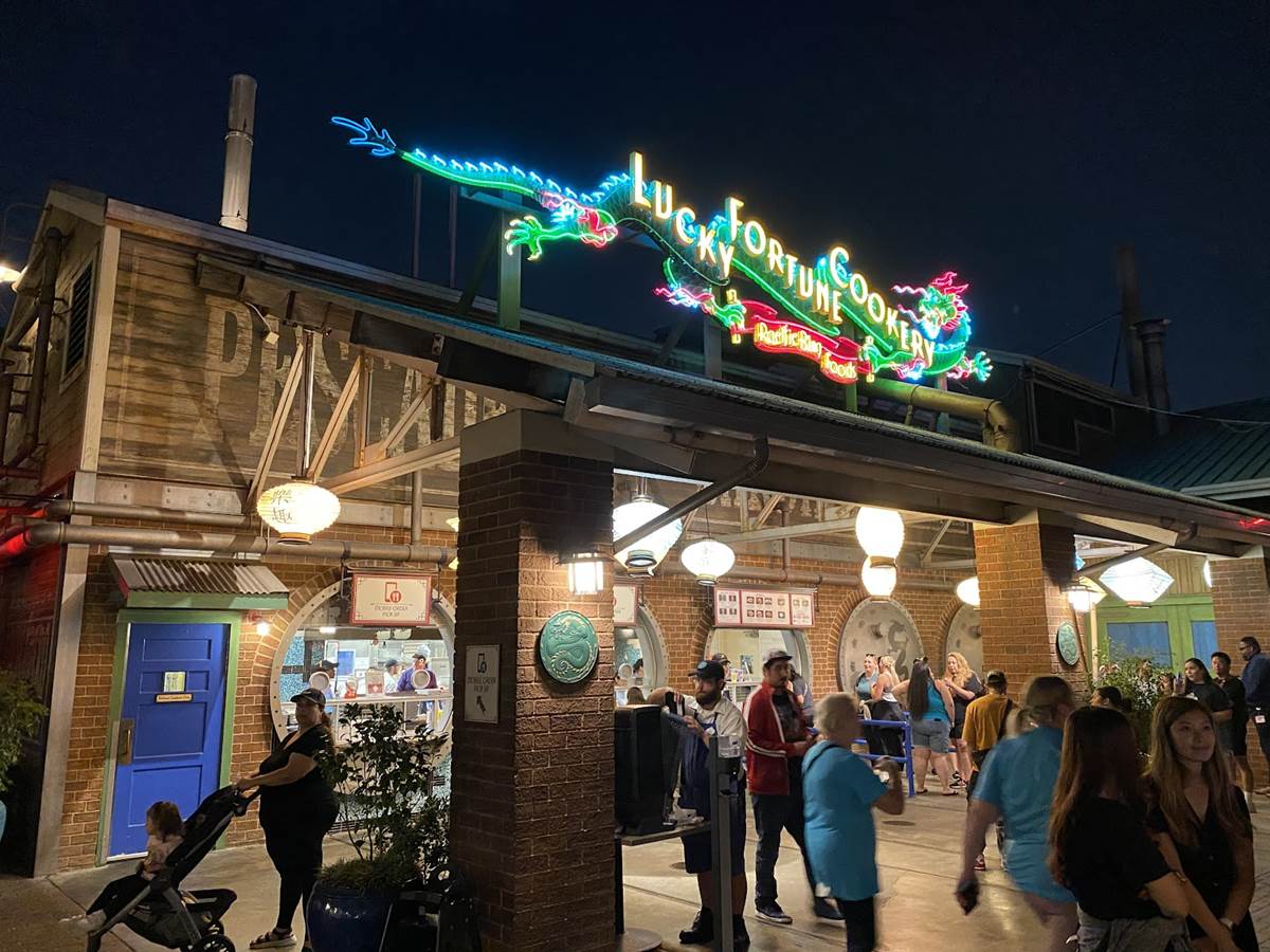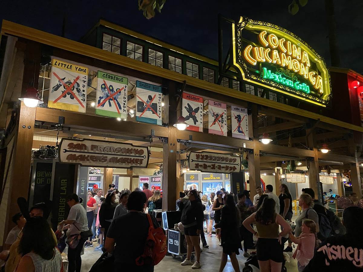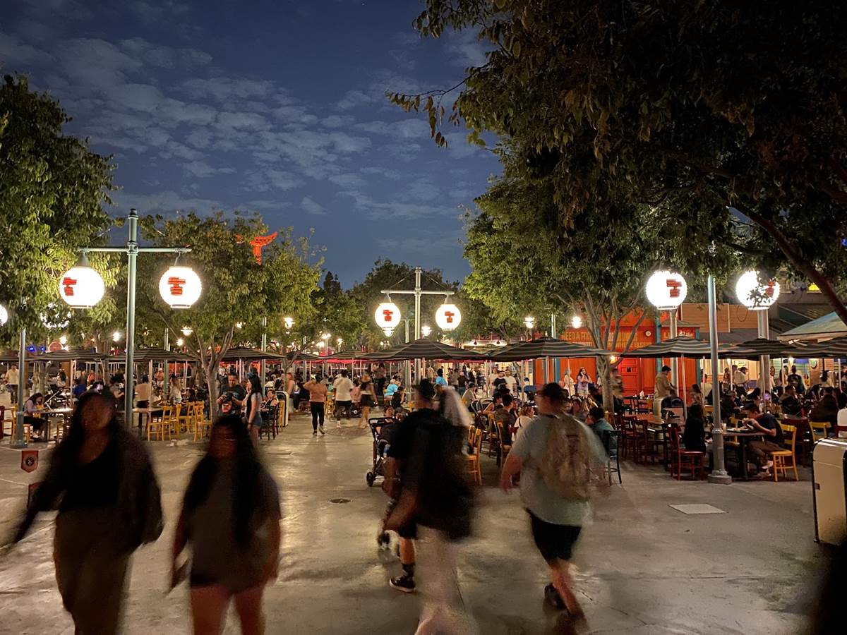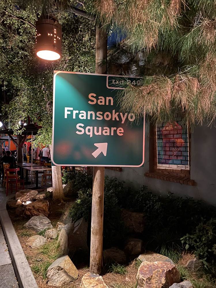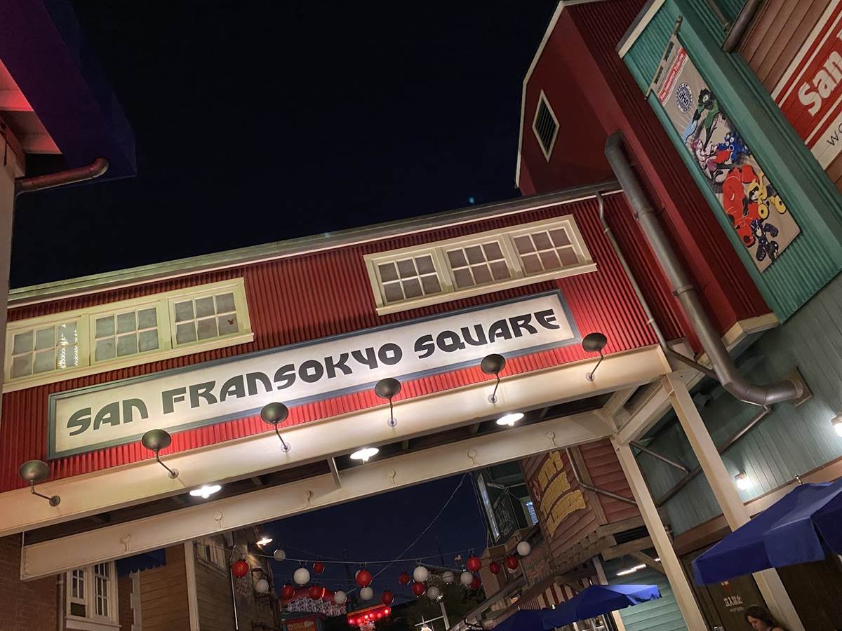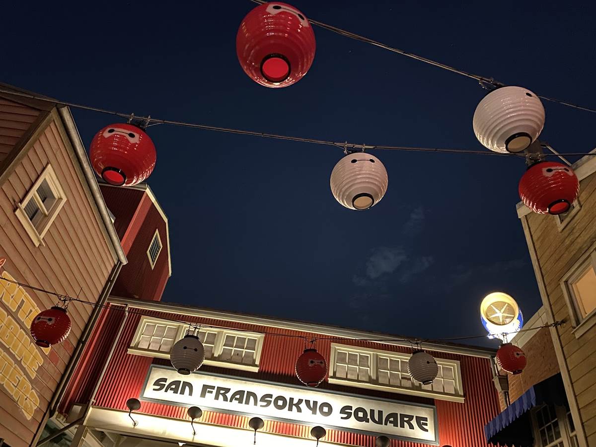 While we have plenty of photos of what park guests can see during the day, let’s take a look around San Fransokyo Square during nighttime at the park, now that it is officially open at Disney California Adventure.