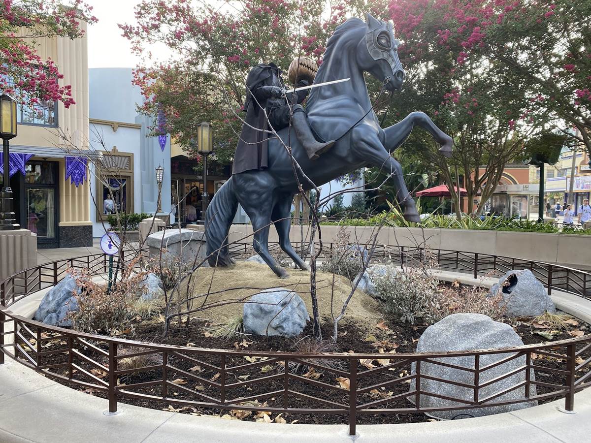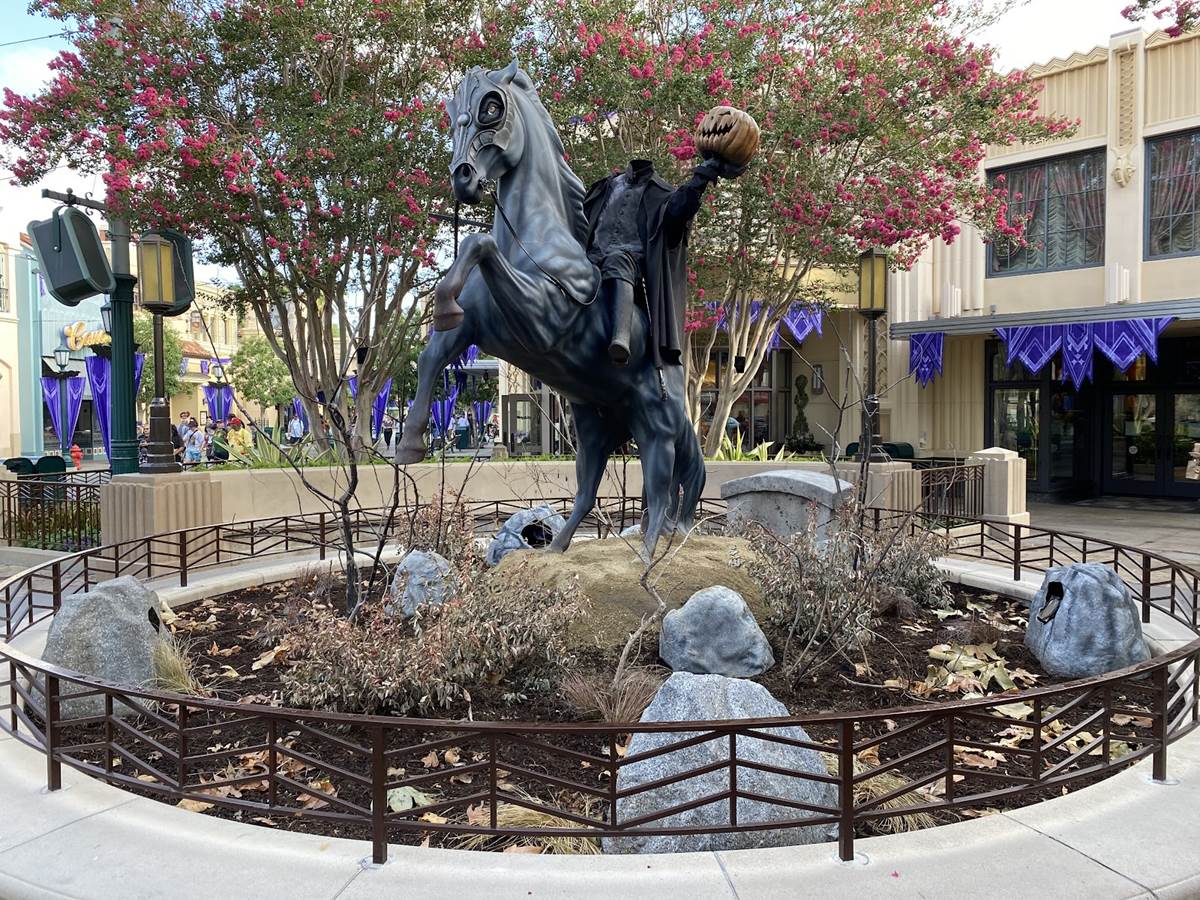 The Headless Horseman statue has returned near Elias and Co. and HollywoodLand, and new this year - features MagicBand+ interactivity. Those wearing a MagicBand+ can trigger different sound effects, like a galloping horse or a whiny as they walk by.