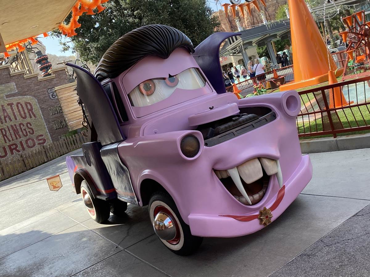 Honkin’ Haul-O-Ween has returned to Cars Land, and the usual sights and sounds for this time of year can be discovered in this land. Once again, Lightning McQueen and Mater make their appearances in their Halloween, er, Haul-O-Ween costumes.