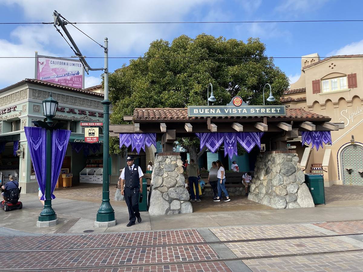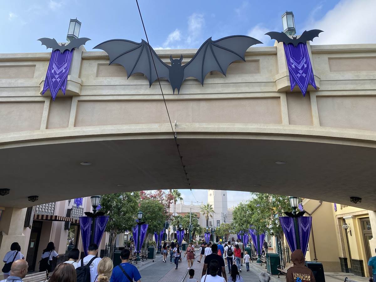 The fun banners featuring bats have returned, as has the giant Oogie Boogie Silhouette above the entrance of Disney California Adventure. Once inside the gates, guests will find the classic purple and bats aesthetic that they have come to love on Buena Vista Street in recent years.