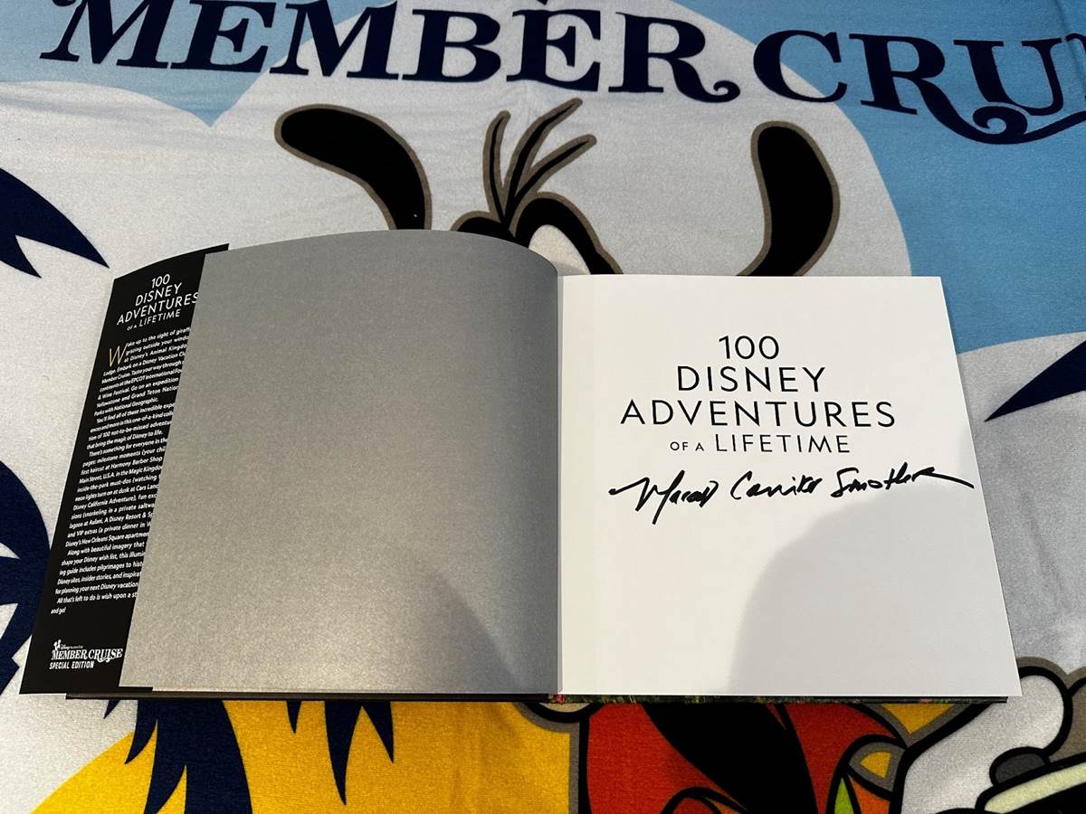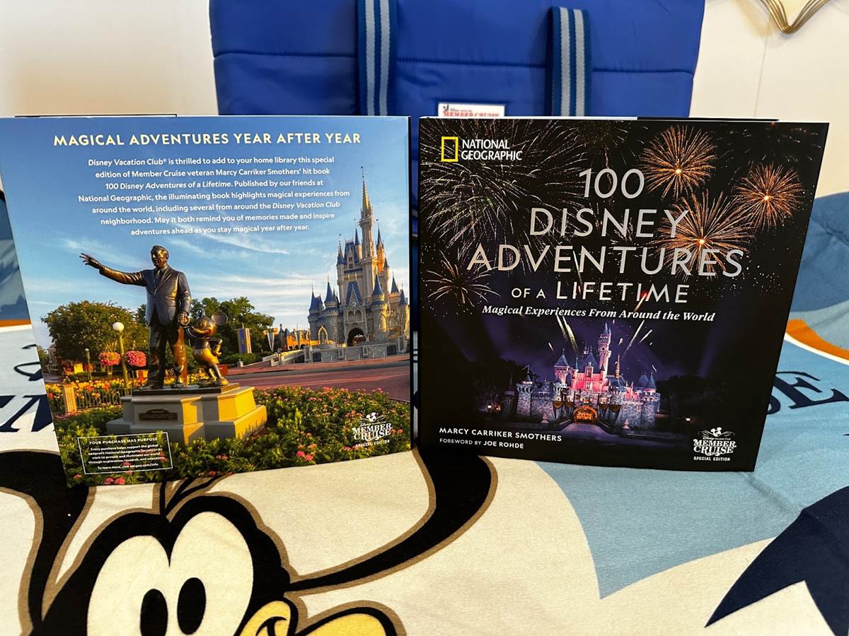 An author-signed, Member Cruise special edition of the National Geographic coffee table book 100 Disney Adventures of a Lifetime by Laughing Place contributor Marcy Carriker Smothers, featuring a custom book jacket and special gatefold highlighting the book's numerous Disney Vacation Club experiences, is a highlight of the gifts.