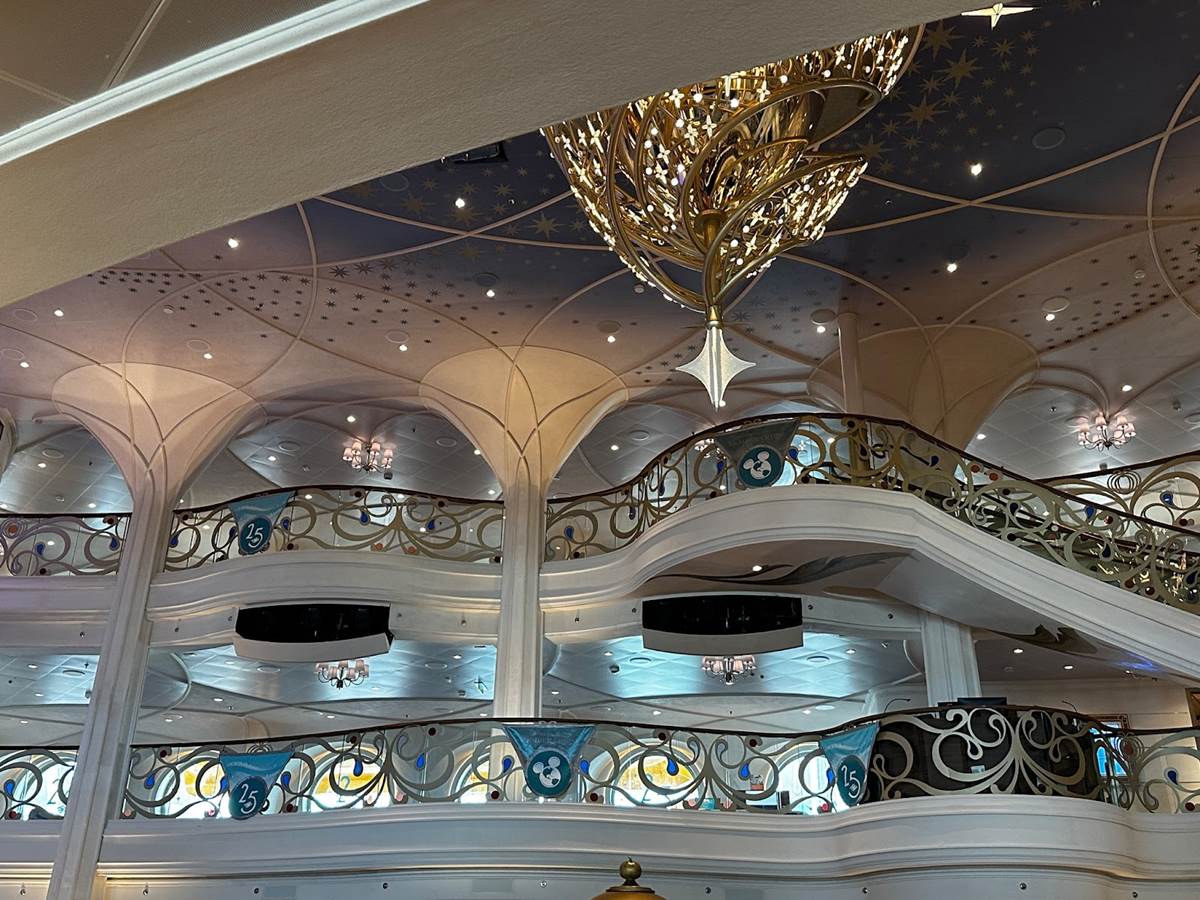 Banners for the DVC Member Cruise have been added into the Grand Hall alongside one's for the 25th Anniversary at Sea.