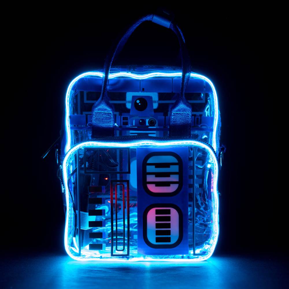 - Five classic characters—Mickey, Minnie, Stitch, Jack Skellington, and R2-D2— lend their smiling faces to these incredible bags that do double duty: they hold all of your daily essentials during the day then light up at night (or anytime really) to make any location an instant party zone!