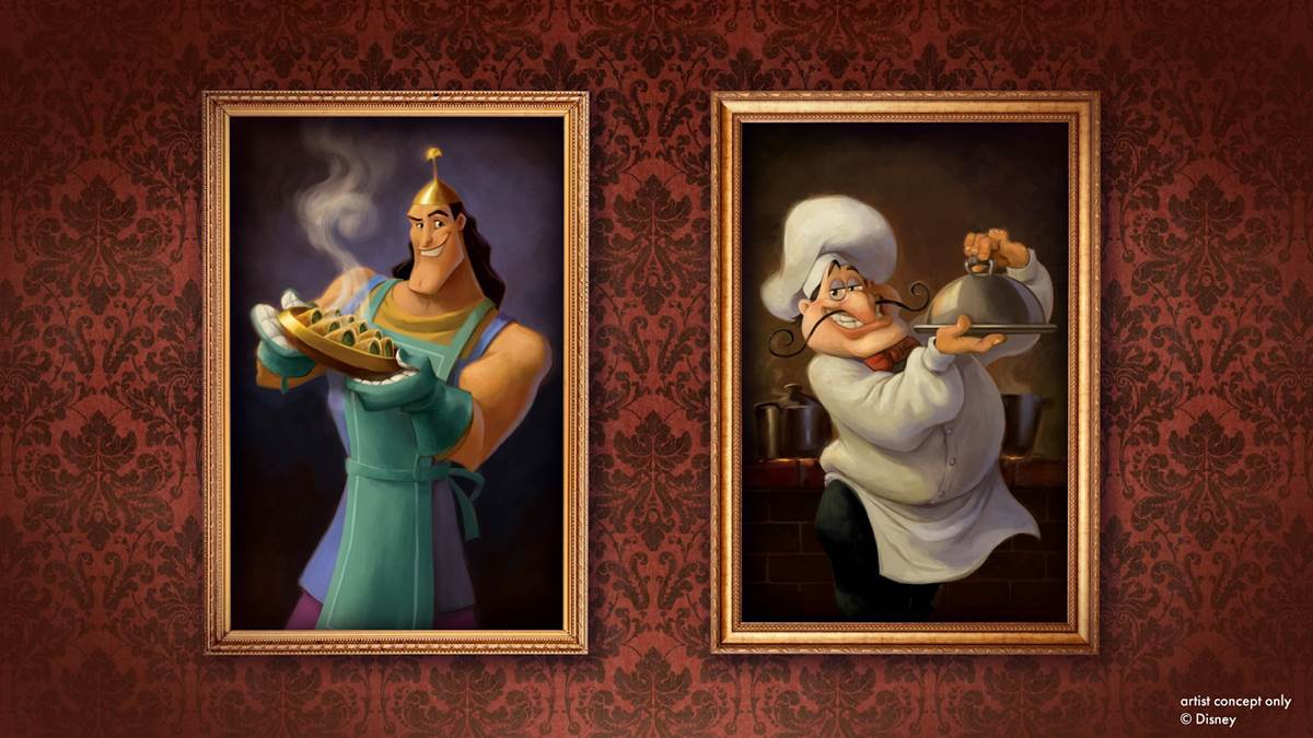 - The tour also offered a first glimpse at The Royal Banquet, which will invite guests to attend a royal feast amidst a gallery of paintings portraying numerous Disney royal families, including their famous chefs such as Kronk from The Emperor’s New Groove or Chef Louis from The Little Mermaid.