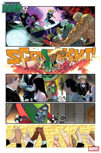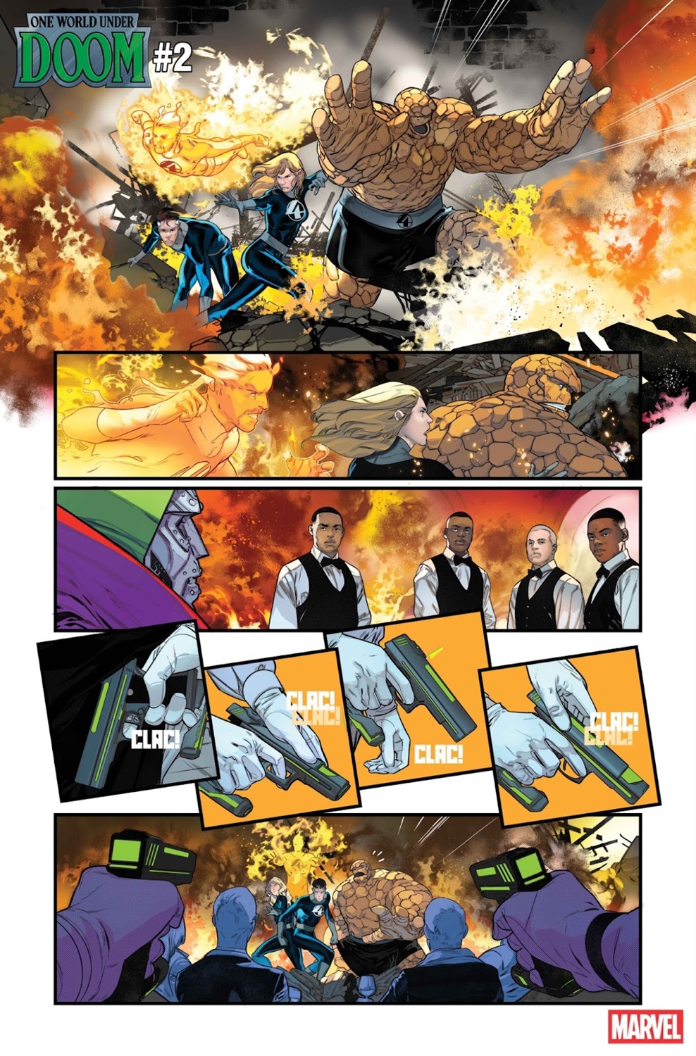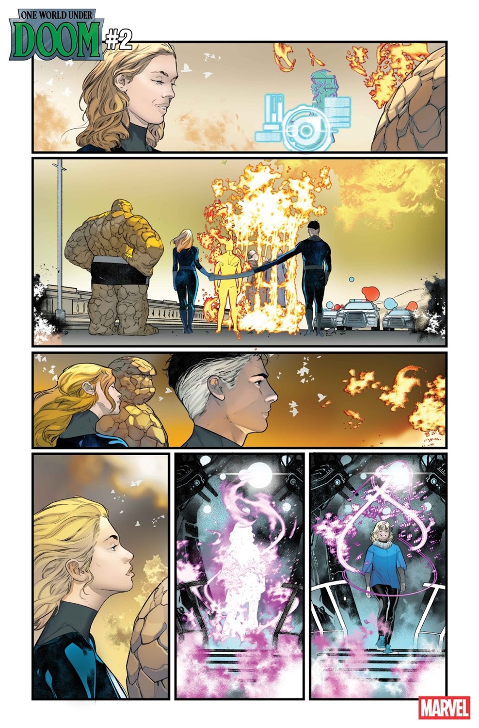 With the first issue of One World Under Doom now available, Marvel has released a look at issue #2, as the Fantastic Four make their presence known in a big way.