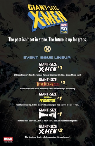 - Adam Kubert’s cover art, depicting Ms. Marvel/Kamala Khan alongside members of 1975’s new X-Men team, in a recreation of the iconic original Giant-Size X-Men cover, is curious, given she’s a young character only recently revealed as a mutant - raising questions about just what sort of time-related shenanigans may be occurring.