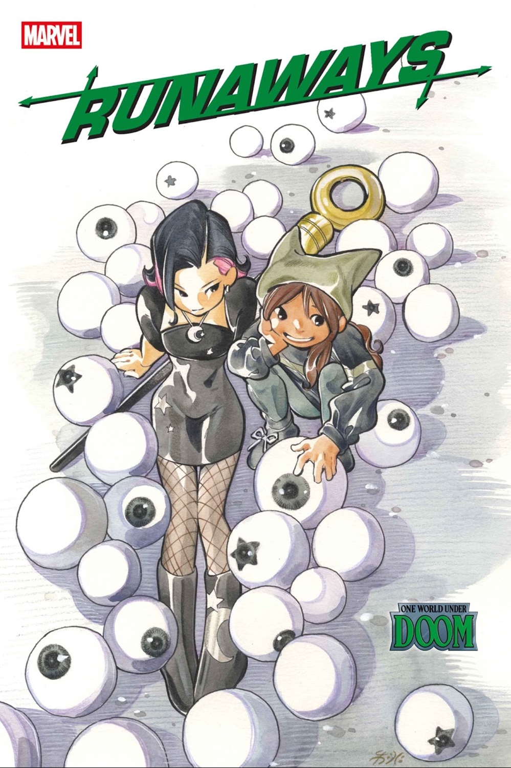 - The cover to Runaways #1 is by Stephanie Hans, with variant covers by Peach Momoko and Ejikure, along with a special wraparound variant cover by Casagrande.