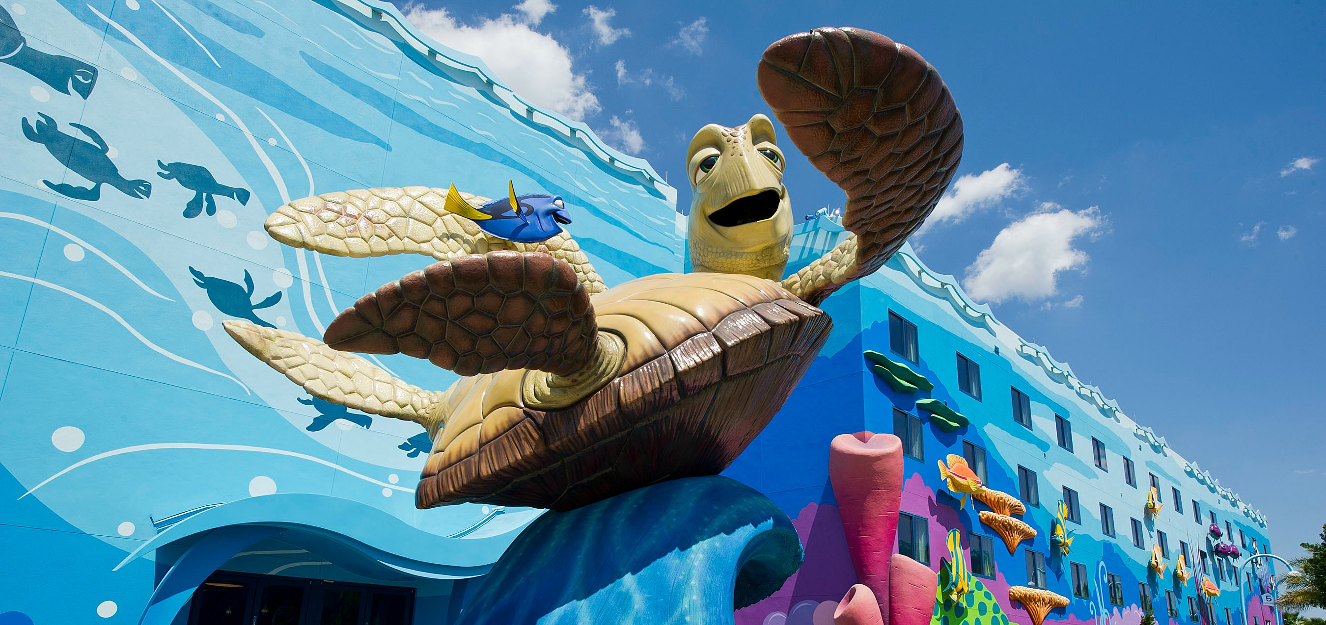1120 Guest Rooms All rooms non-smoking All buildings offer elevators and stairs with interior corridorsResort Features: Big Blue, the main resort pool, is 11,859 square feet. Big Blue is located in the Finding Nemo area of the resort. This pool is currently the largest swimming pool at Walt Disney World Resort outside of the water parks. Standard room amenities: Alarm clock, mini fridge, hair dryer, in-room safe, iron and ironing board, telephone with no surcharge (charges for long-distance will apply), television, vanity area, voice mail, Wi-Fi wireless internet