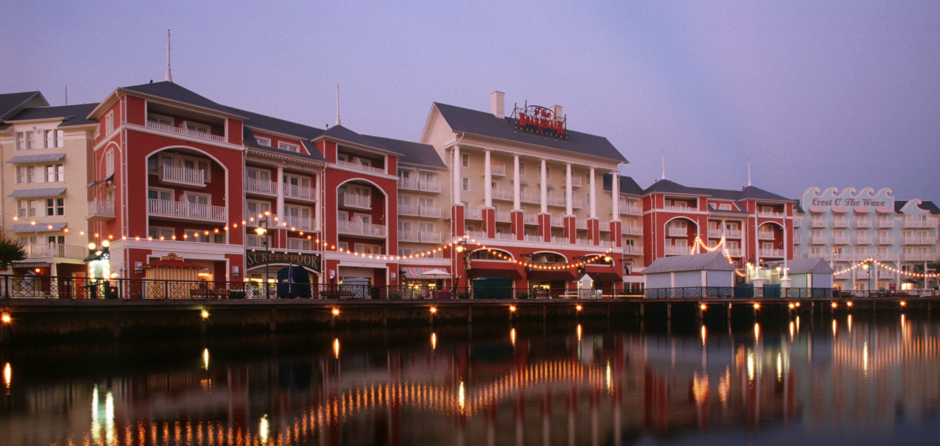 The Boardwalk Inn is modeled after a turn-of the-century Atlantic City resort. The property wonderfully captures the magical feeling of an Eastern Seaboard during the 20's and 30's. The Boardwalk Inn sits at the edge of Crescent Lake and offers many dining and entertainment experiences along the Coney Island-style boardwalk attached to the property. Epcot Resort Area 2101 North Epcot Resorts Boulevard