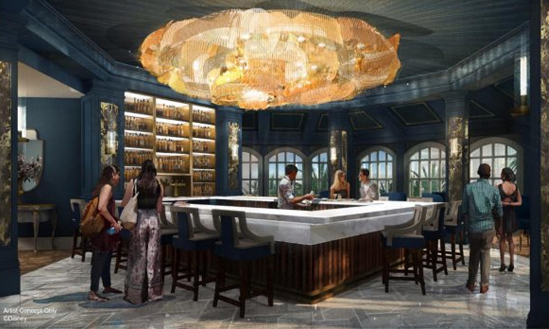 Guests of Disney’s Grand Floridian Resort & Spa will soon be saying “bonjour” to a brand new addition to the resort. Enchanted Rose is a new bar and lounge themed to Disney’s Beauty and the Beast and will be located in the space formerly occupied by Mizner’s Lounge and Commander Porter’s. Enchanted Rose will feature four unique spaces inspired by Belle and the Beast. The signature bar will be illuminated by a magnificent golden chandelier inspired by Belle’s iconic yellow ball gown, with nods to the Beast’s magical rose. The lounge will also include a formal library, and a garden room inspired by the enchanted forest surrounding Beast’s castle. An outdoor patio area will mimic the Beast’s garden terrace.